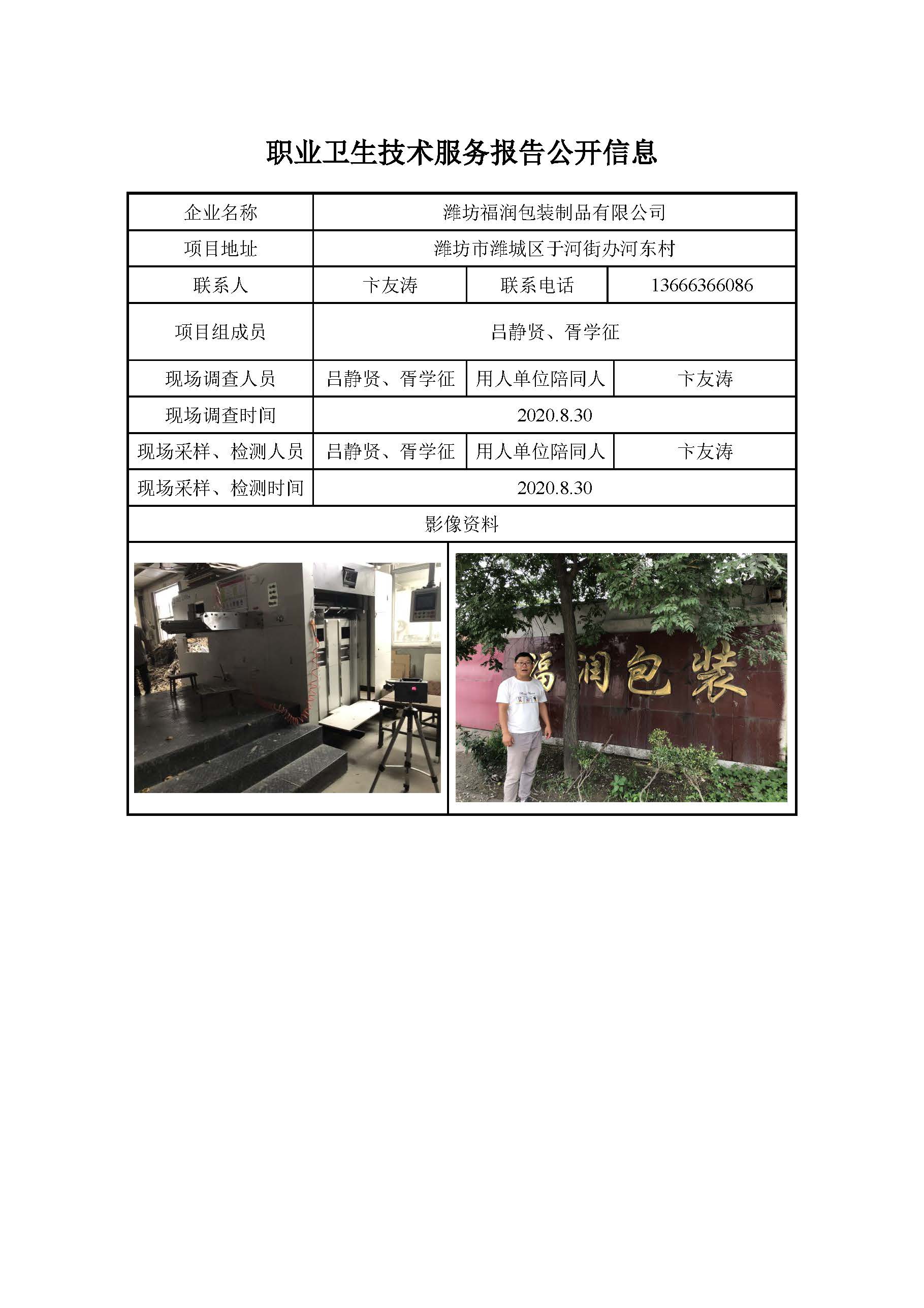 ZBZY20-DQ-156潍坊福润包装制品有限公司 职业病危害因素定期检测