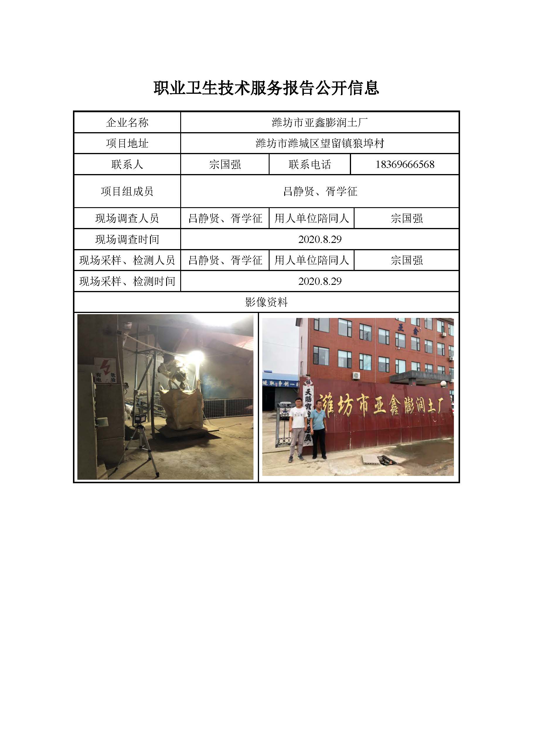 ZBZY20-DQ-154潍坊市亚鑫膨润土厂 职业病危害因素定期检测