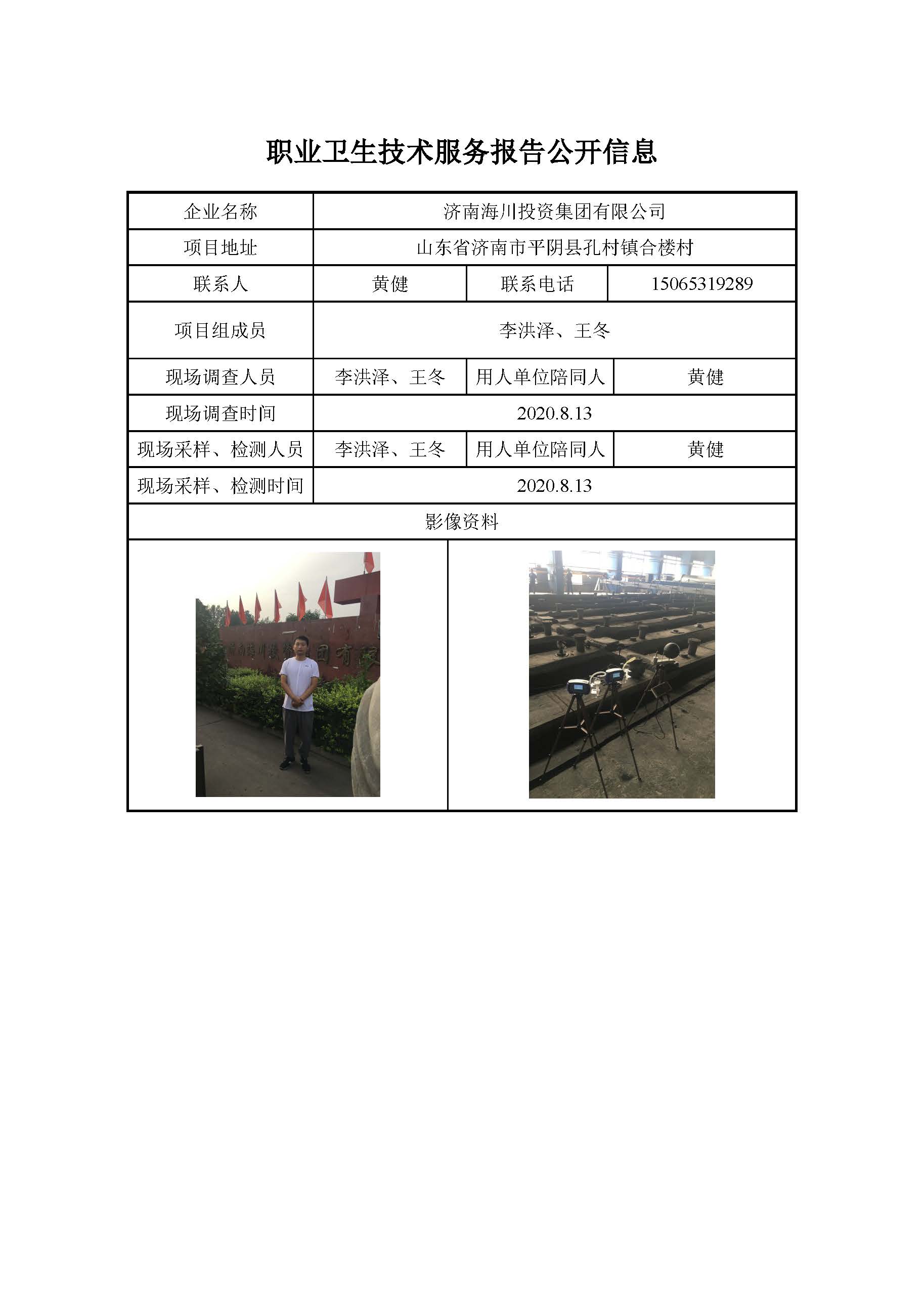 ZBZY20-DQ-151 济南海川投资集团有限公司职业病危害因素定期检测
