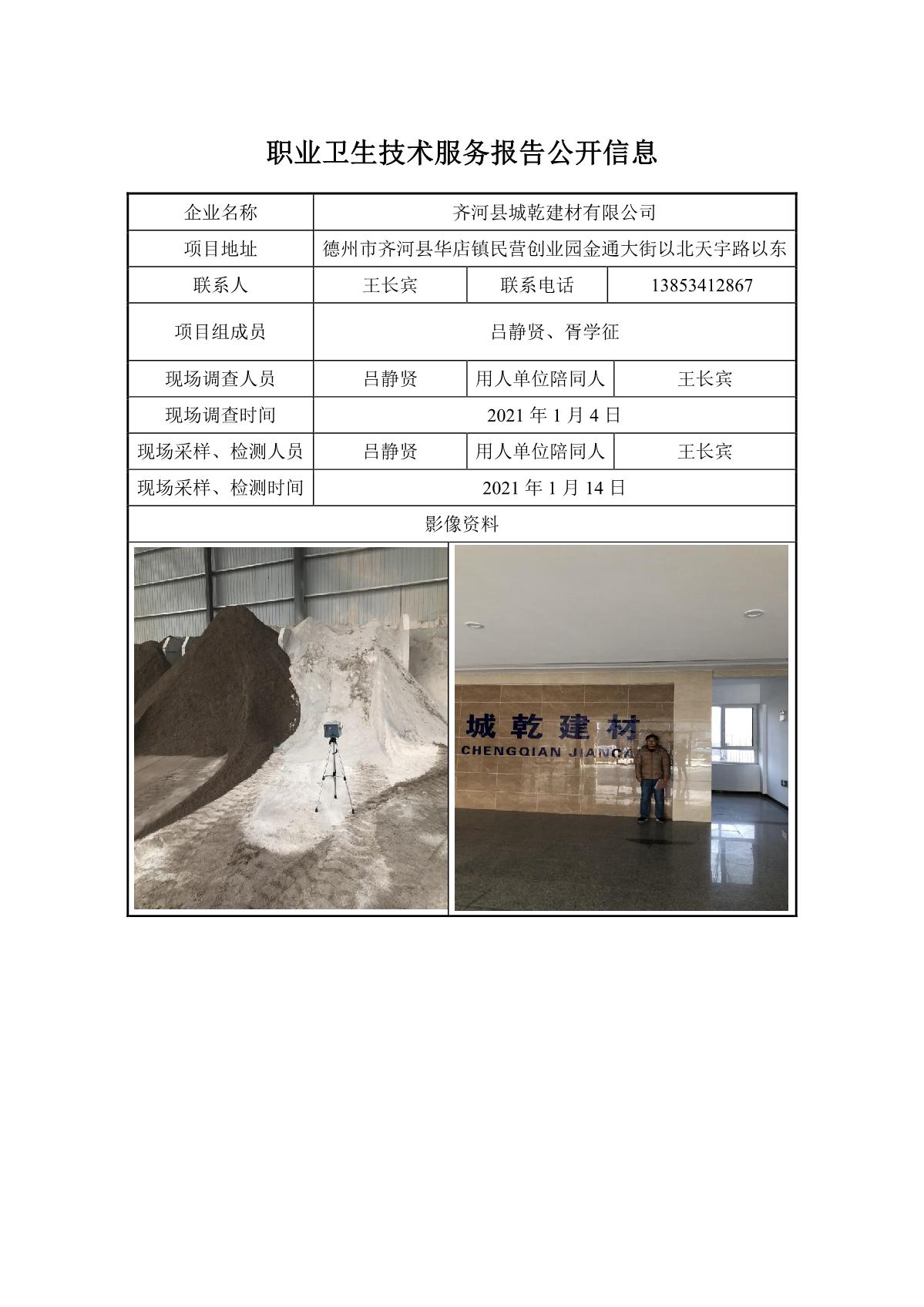 ZBZY21-DQ-002齐河县城乾建材有限公司职业病危害因素定期检测