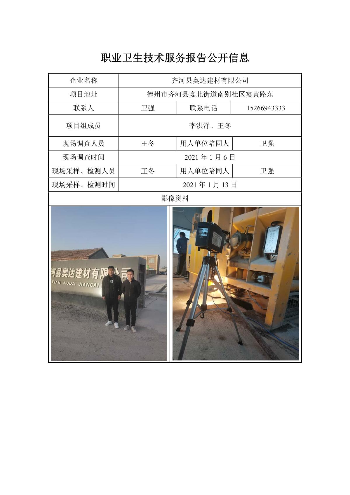 ZBZY21-DQ-006齐河县奥达建材有限公司职业病危害因素定期检测
