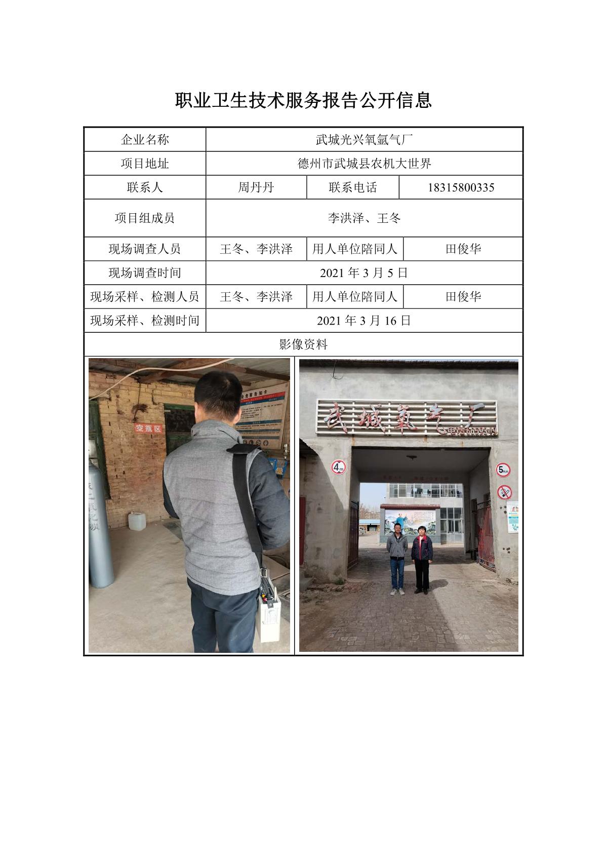ZBZY21-DQ-020武城光兴氧氩气厂职业病危害因素定期检测