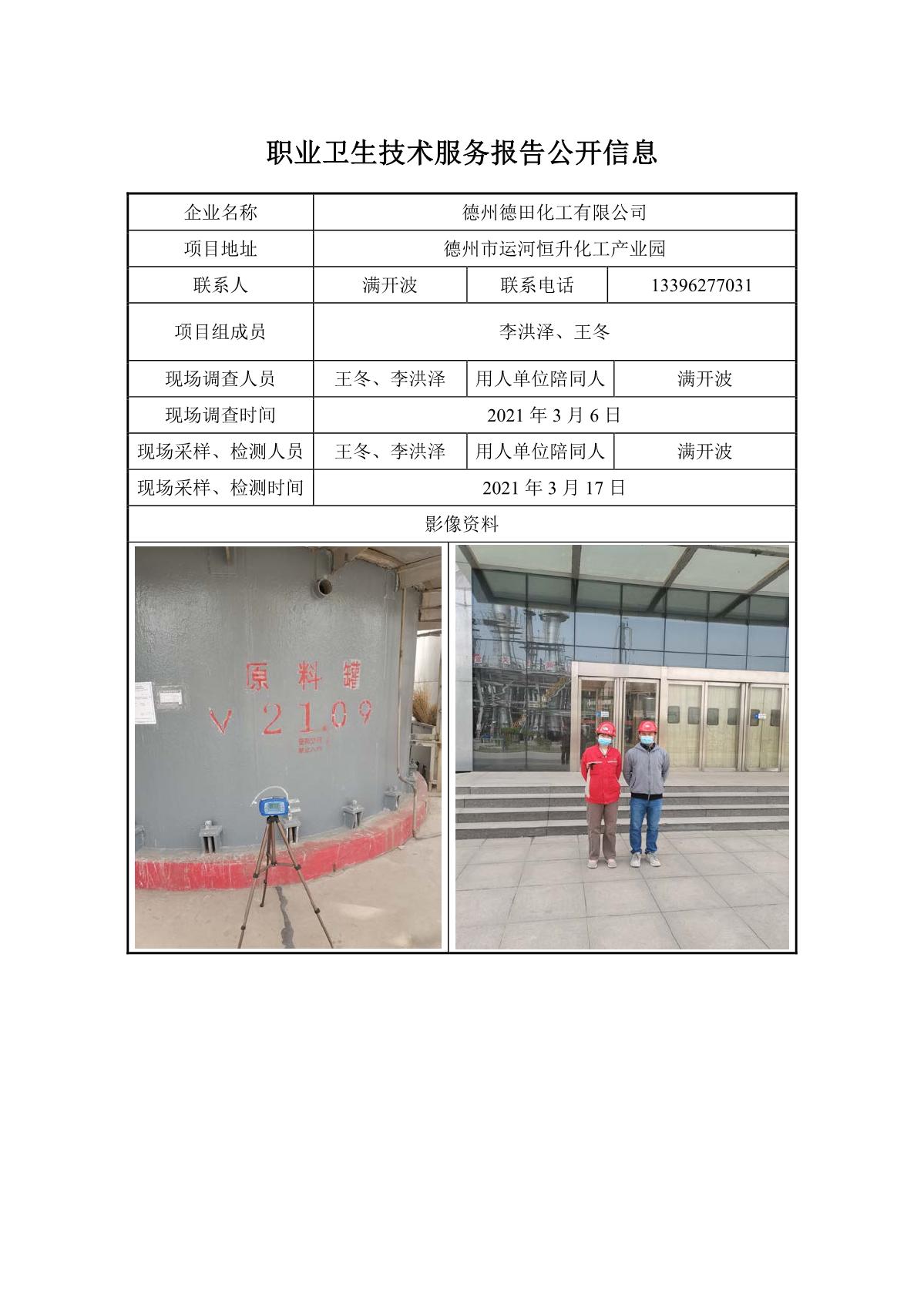 ZBZY21-DQ-025德州德田化工有限公司职业病危害因素定期检测