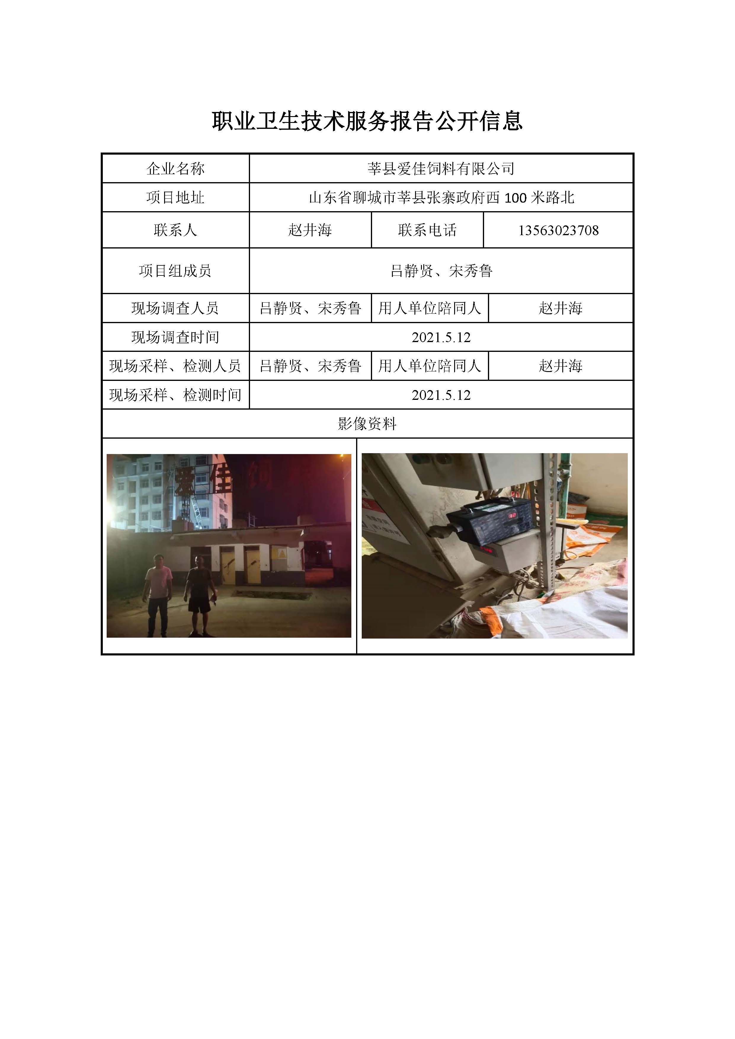 ZBZY21-DQ-048莘县爱佳饲料有限公司日常监测
