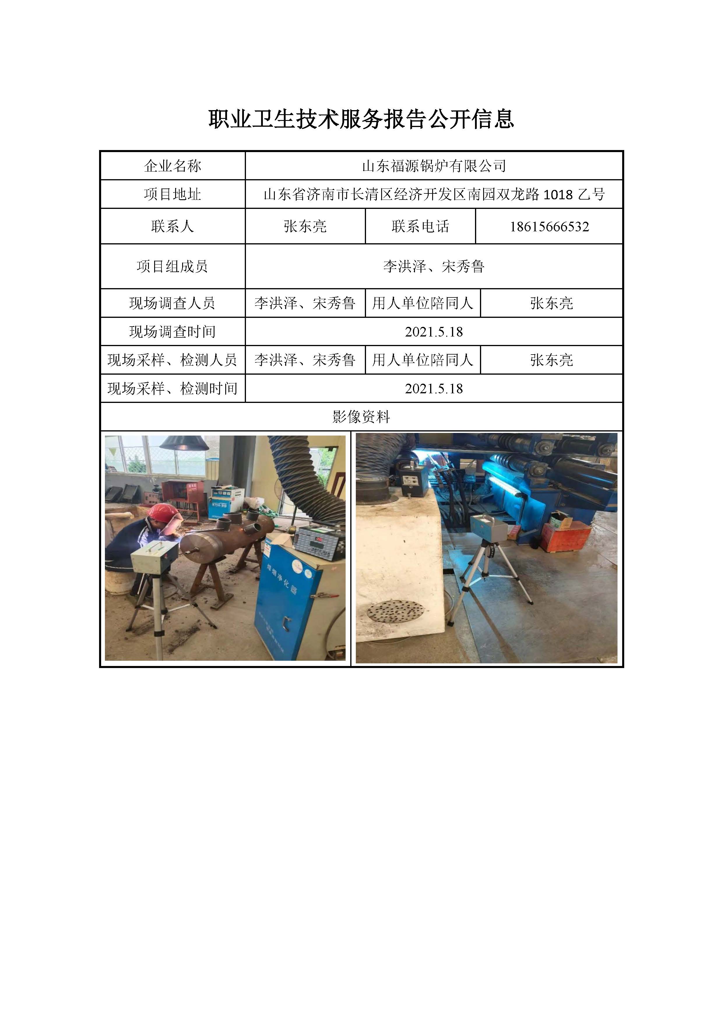 ZBZY21-DQ-052山东福源锅炉有限公司日常检测