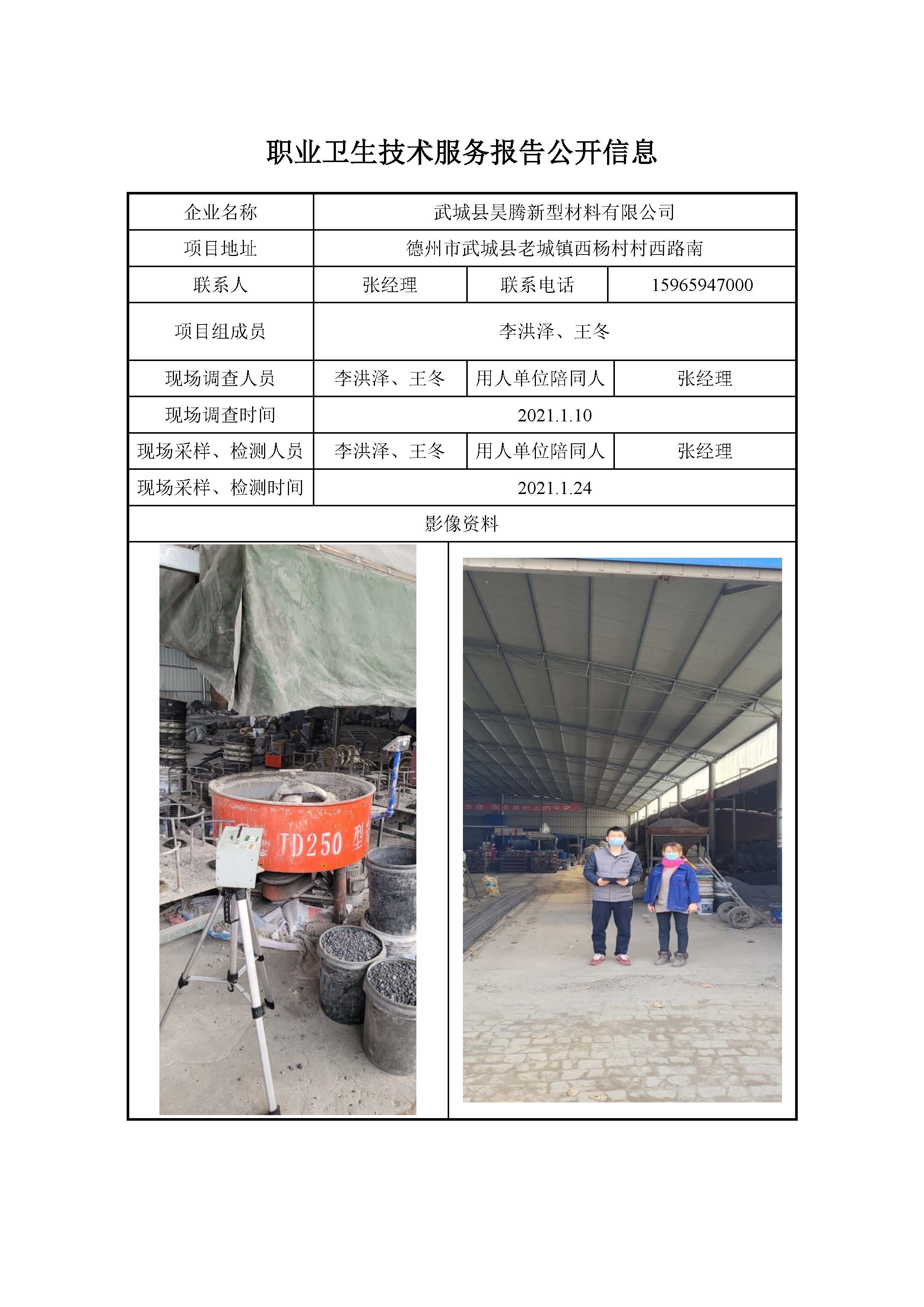 ZBZY21-DQ-009 武城县昊腾新型材料有限公司职业病危害因素定期检测