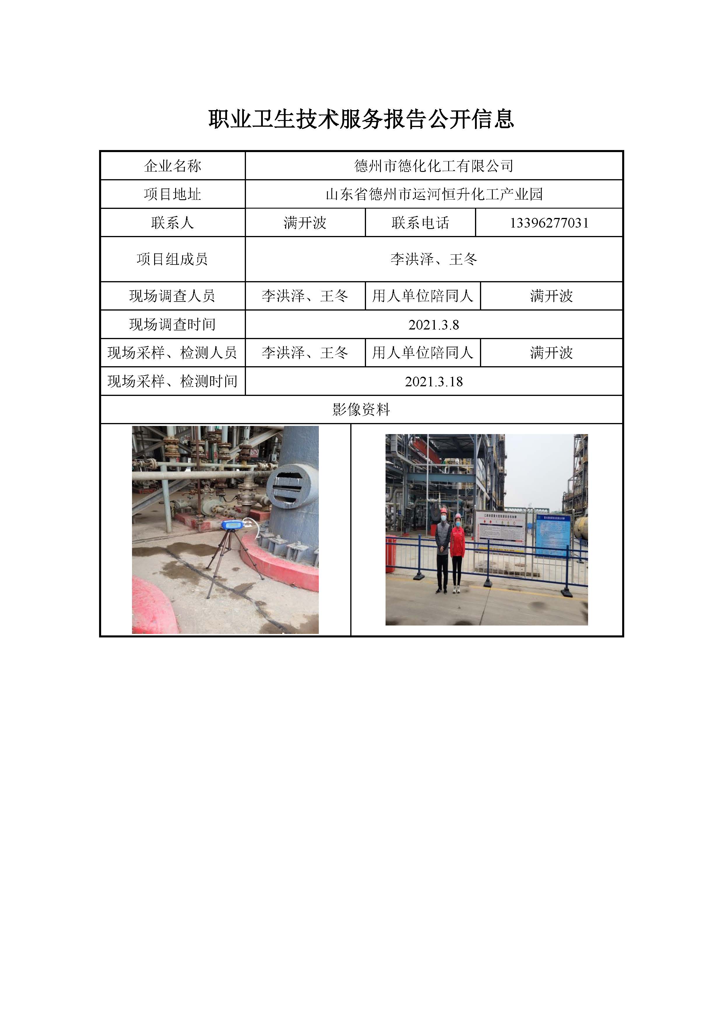 ZBZY21-DQ-024 德州市德化化工有限公司职业病危害因素定期检测