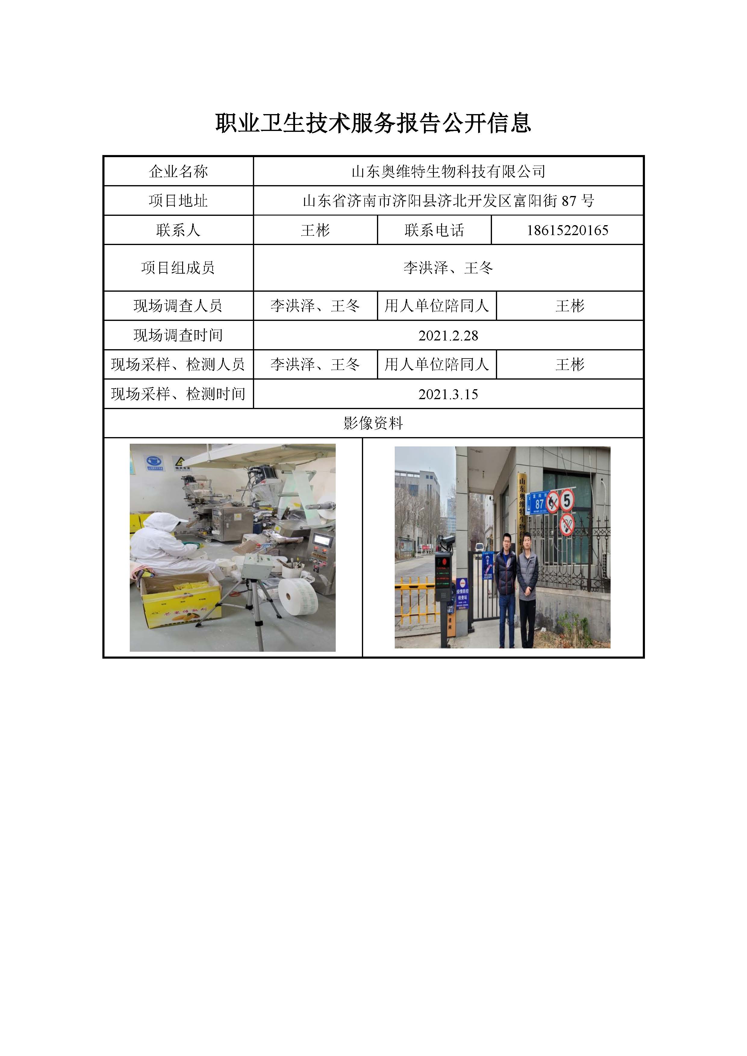 ZBZY21-DQ-028 山东奥维特生物科技有限公司职业病危害因素定期检测