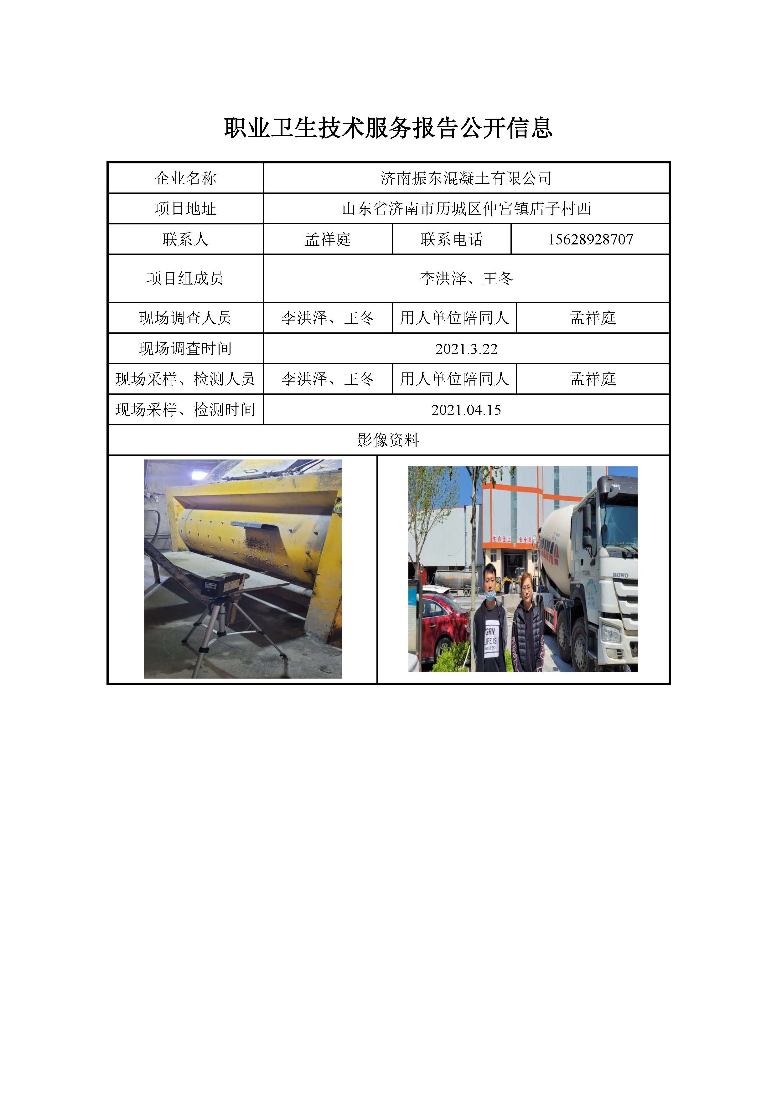 ZBZY21-DQ-033 济南振东混凝土有限公司职业病危害因素定期检测
