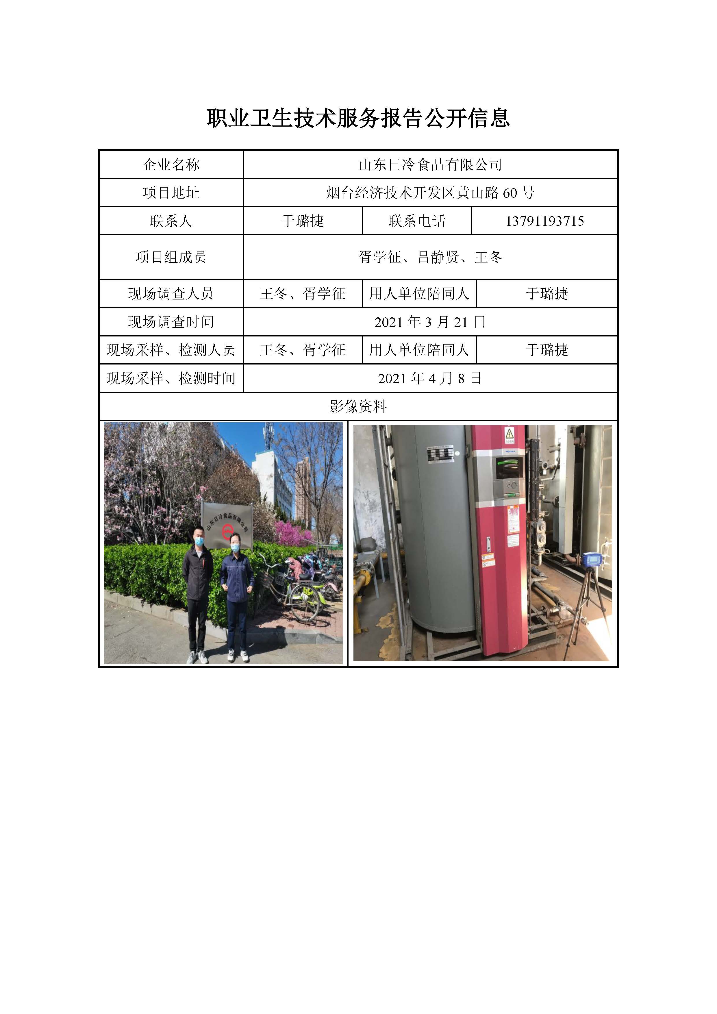 ZBZY21-DQ-038 山东日冷食品有限公司职业病危害因素定期检测