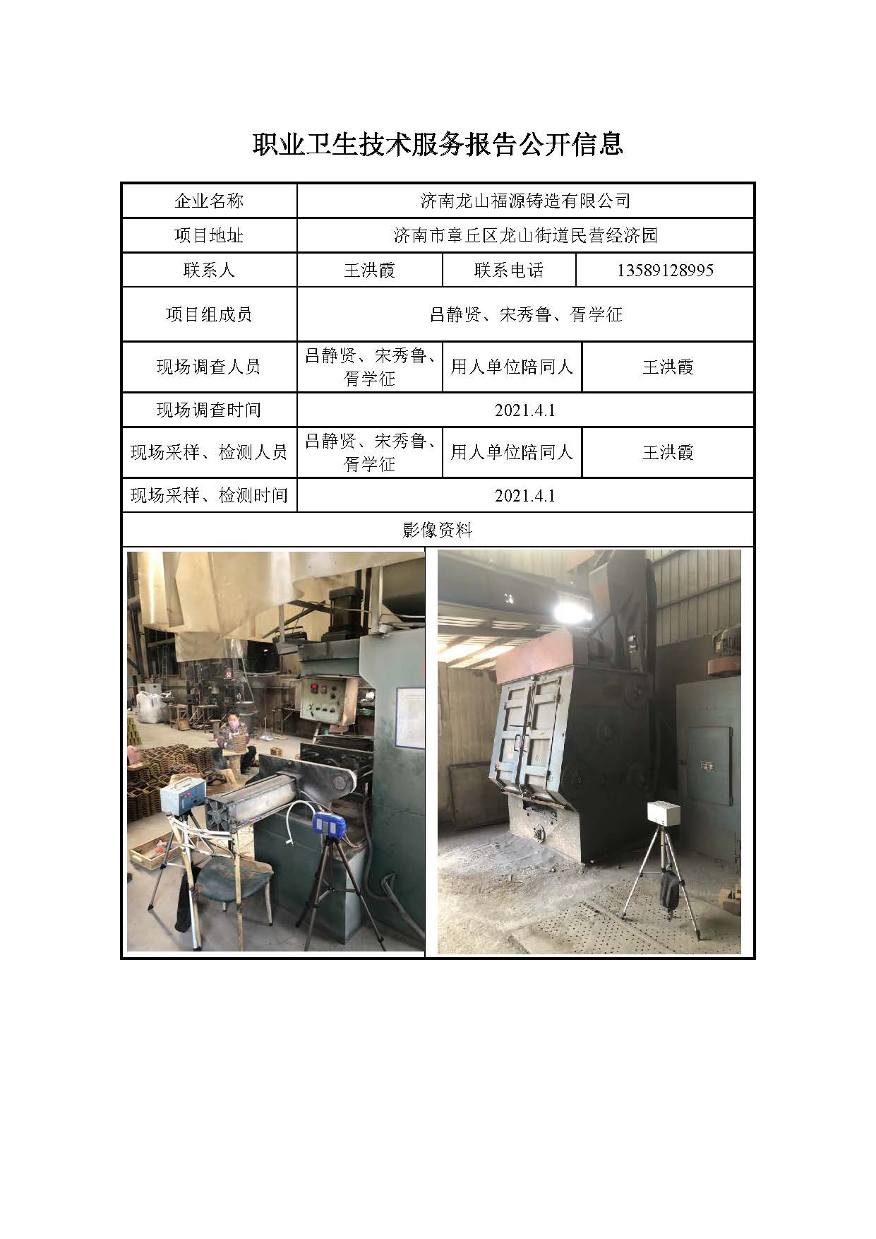 ZBZY21-DQ-029济南龙山福源铸造有限公司日常检测信息公开