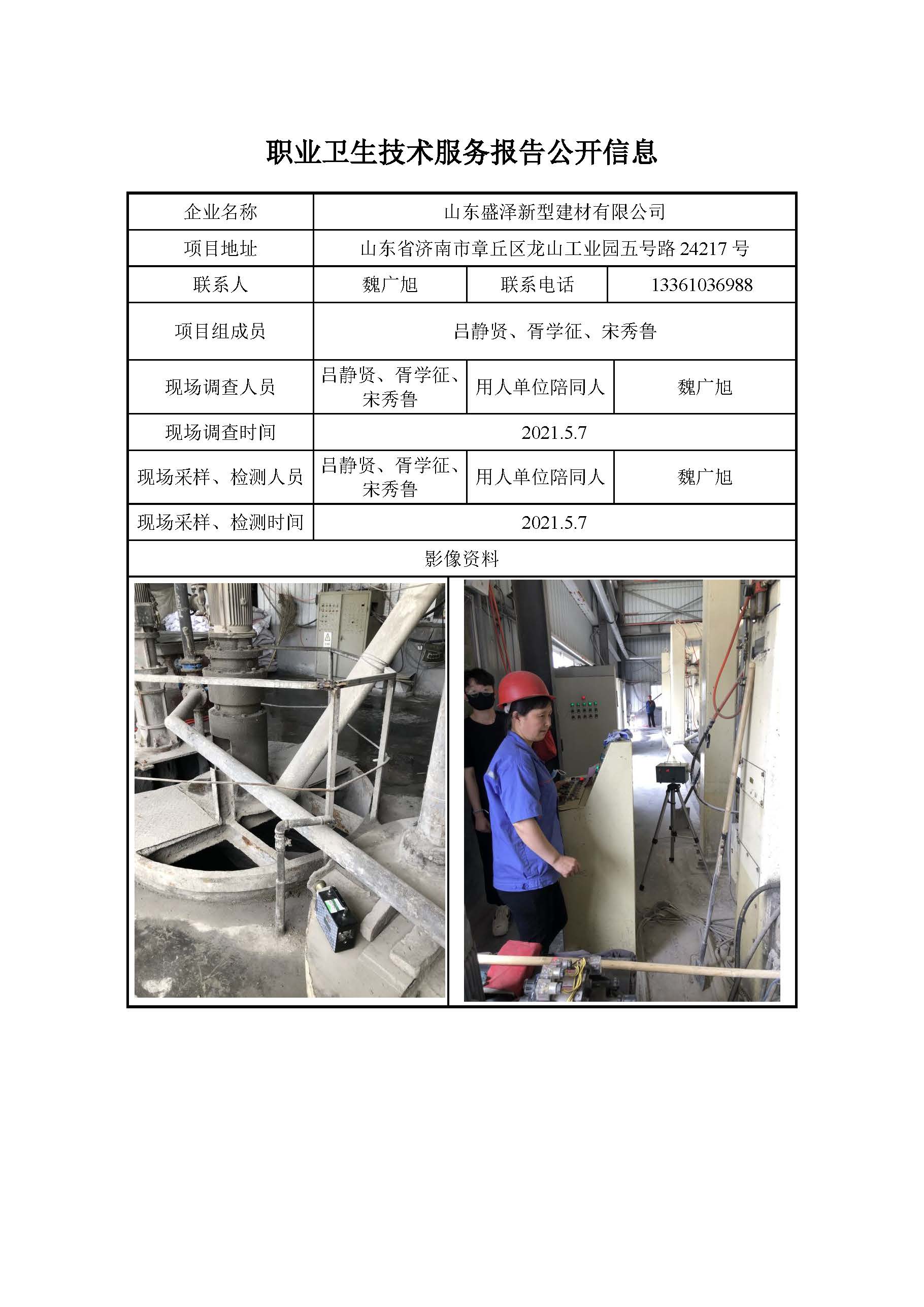 ZBZY21-DQ-044山东盛泽新型建材有限公司日常检测信息公开