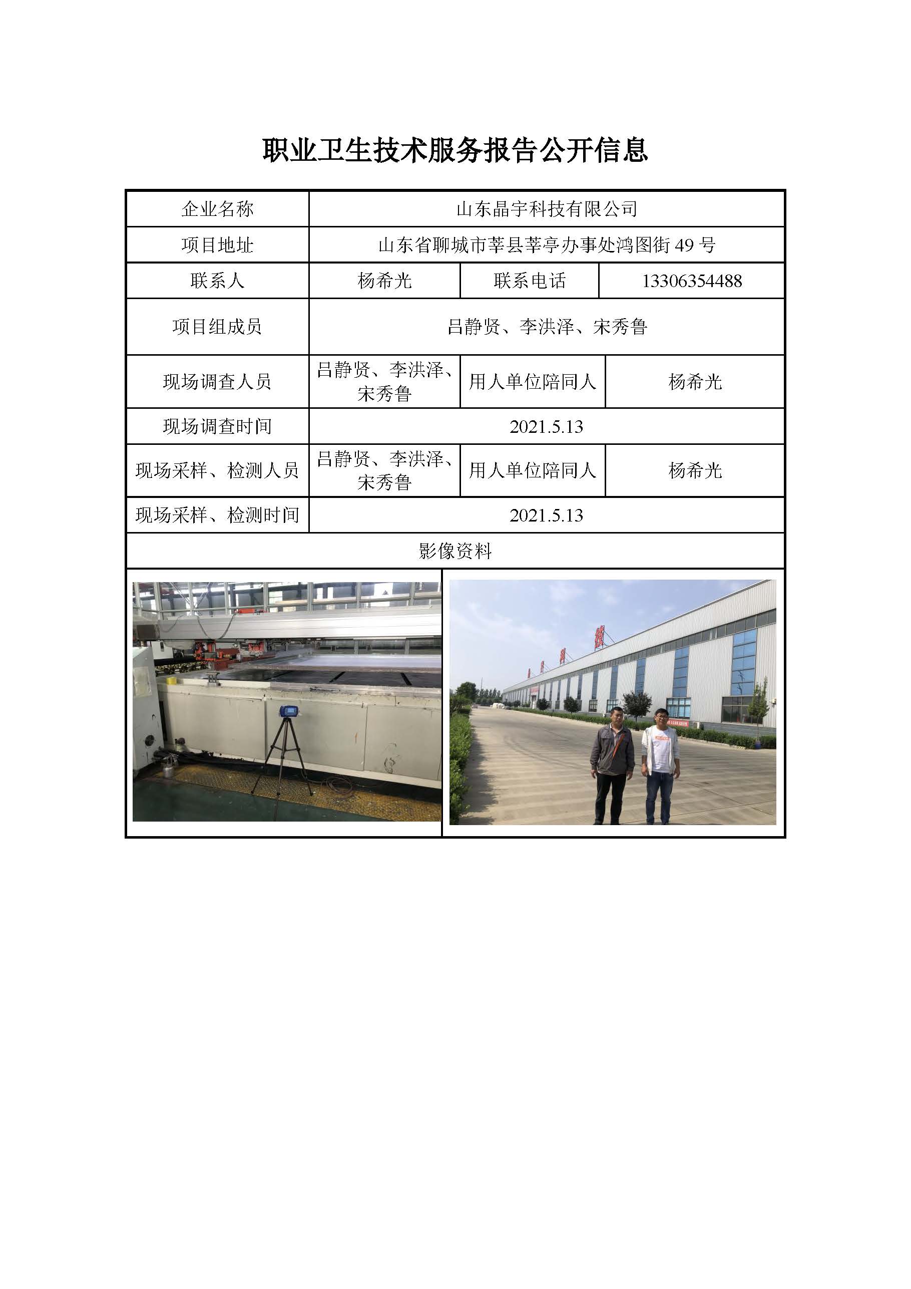 ZBZY21-DQ-046山东晶宇科技有限公司日常检测信息公开