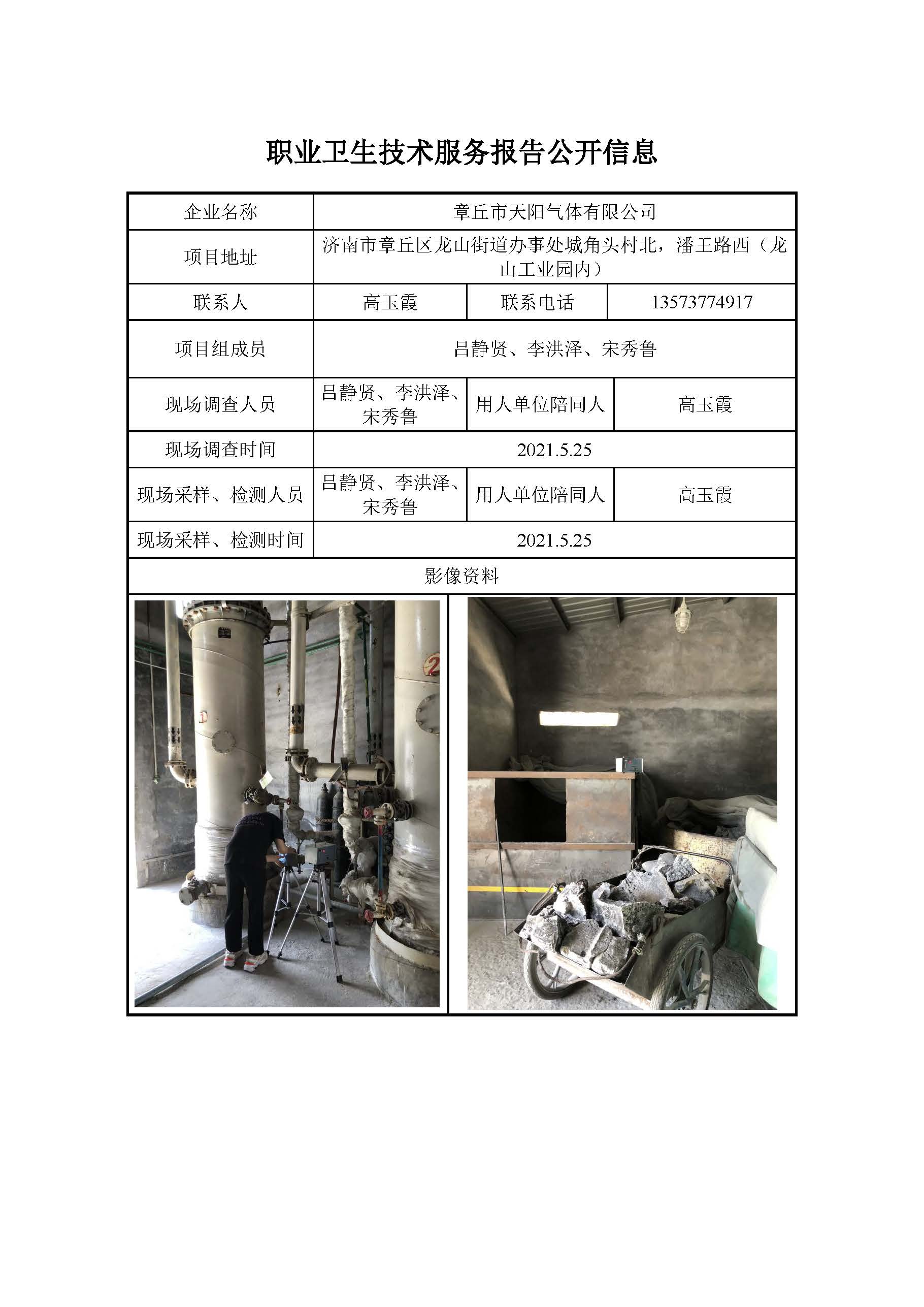 ZBZY21-DQ-053章丘市天阳气体有限公司日常检测信息公开