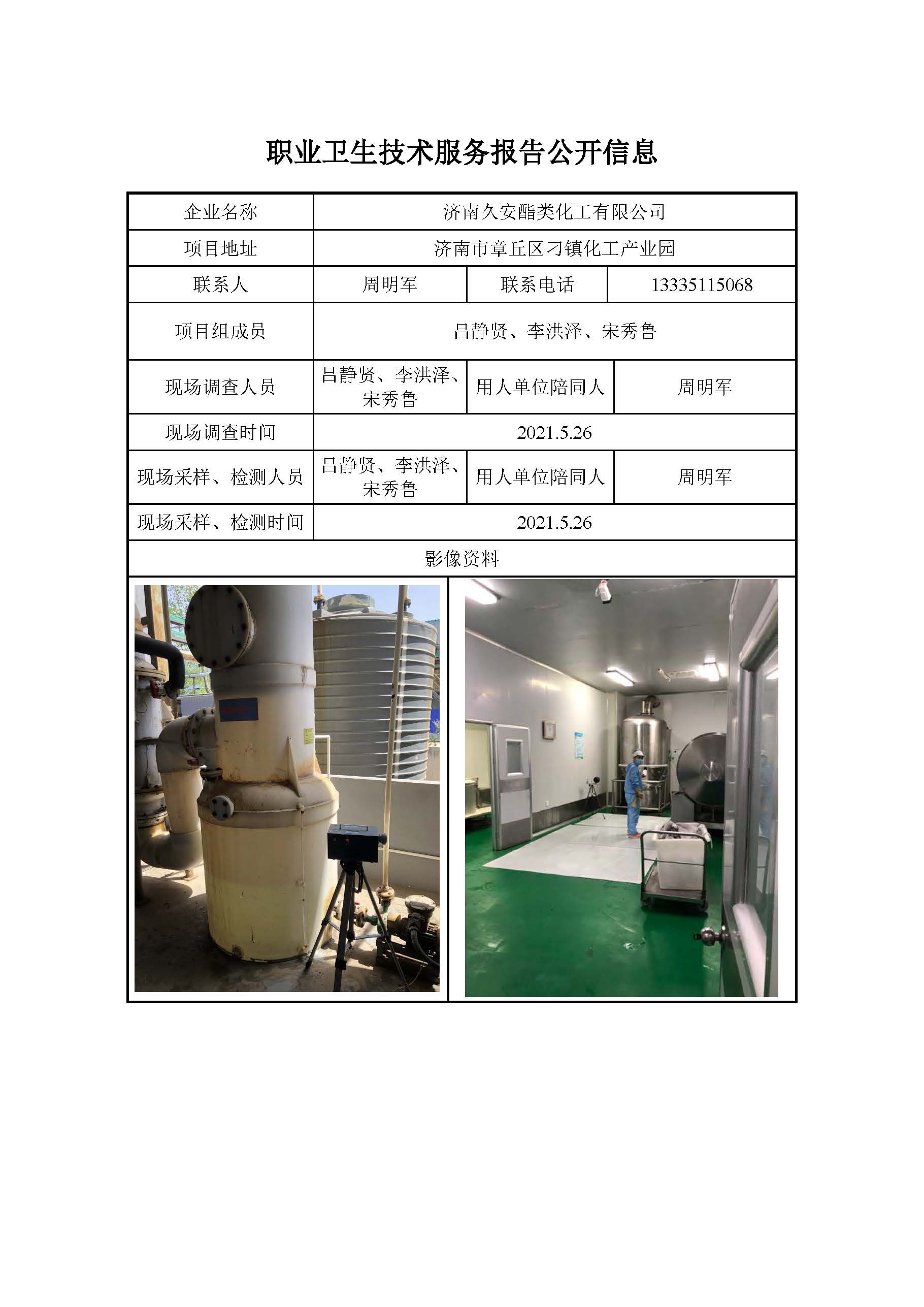 ZBZY21-DQ-055济南久安酯类化工有限公司日常检测信息公开