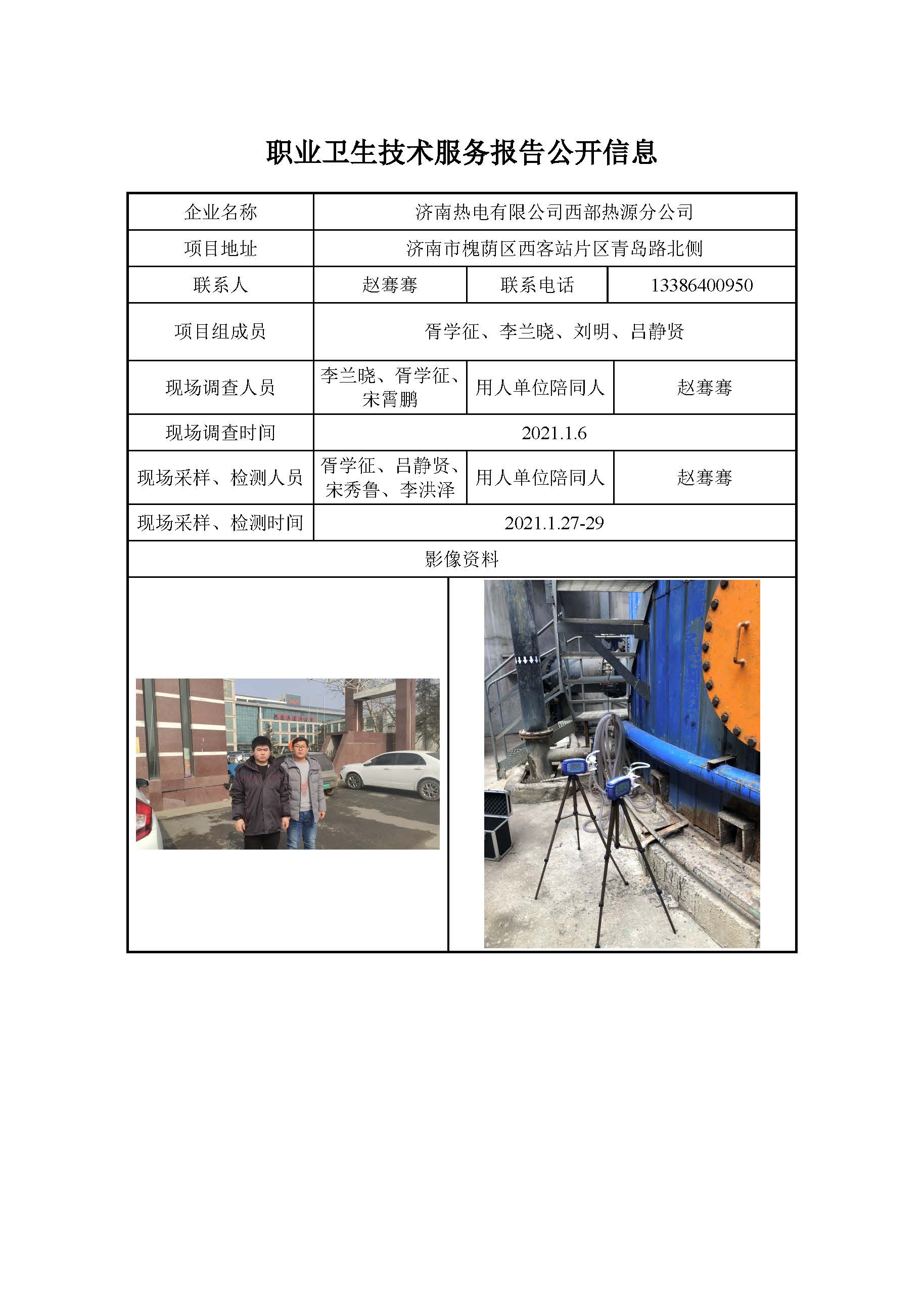 ZBZY21-XP-001济南热电有限公司西部热源分公司职业病危害现状评价