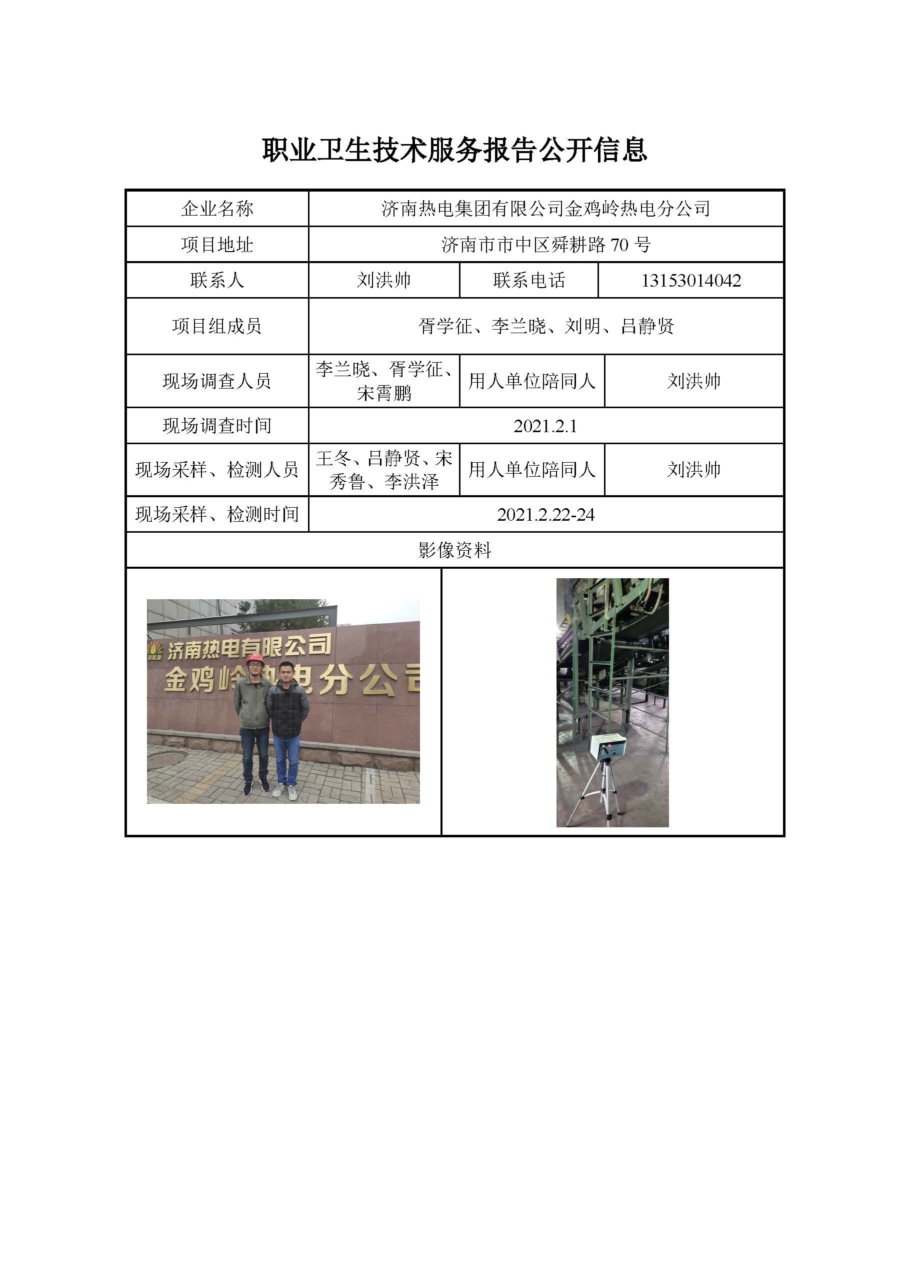ZBZY21-XP-006济南热电集团有限公司金鸡岭热电分公司职业病危害现状评价报告书