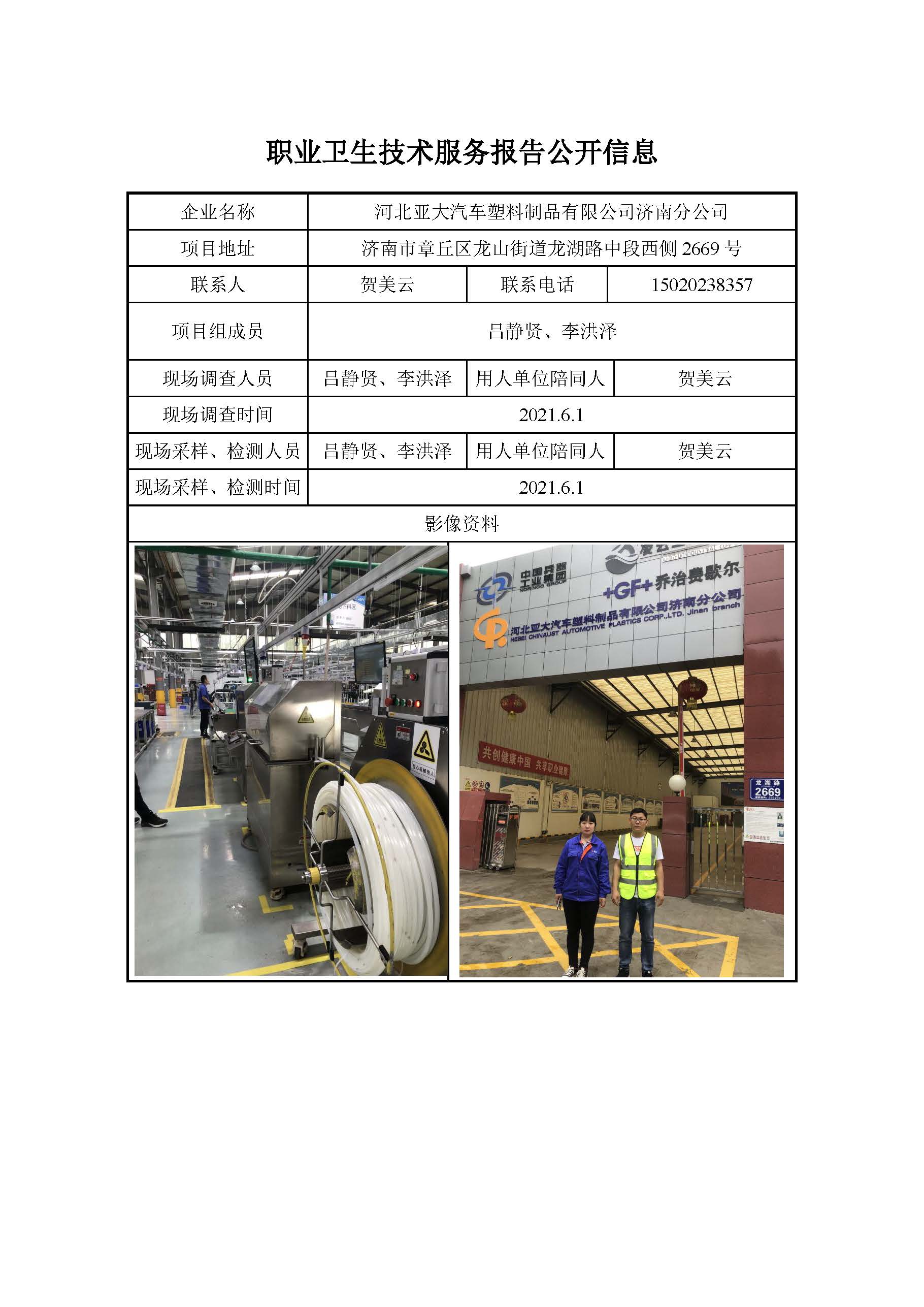 ZBZY21-DQ-059河北亚大汽车塑料制品有限公司济南分公司日常检测信息公开
