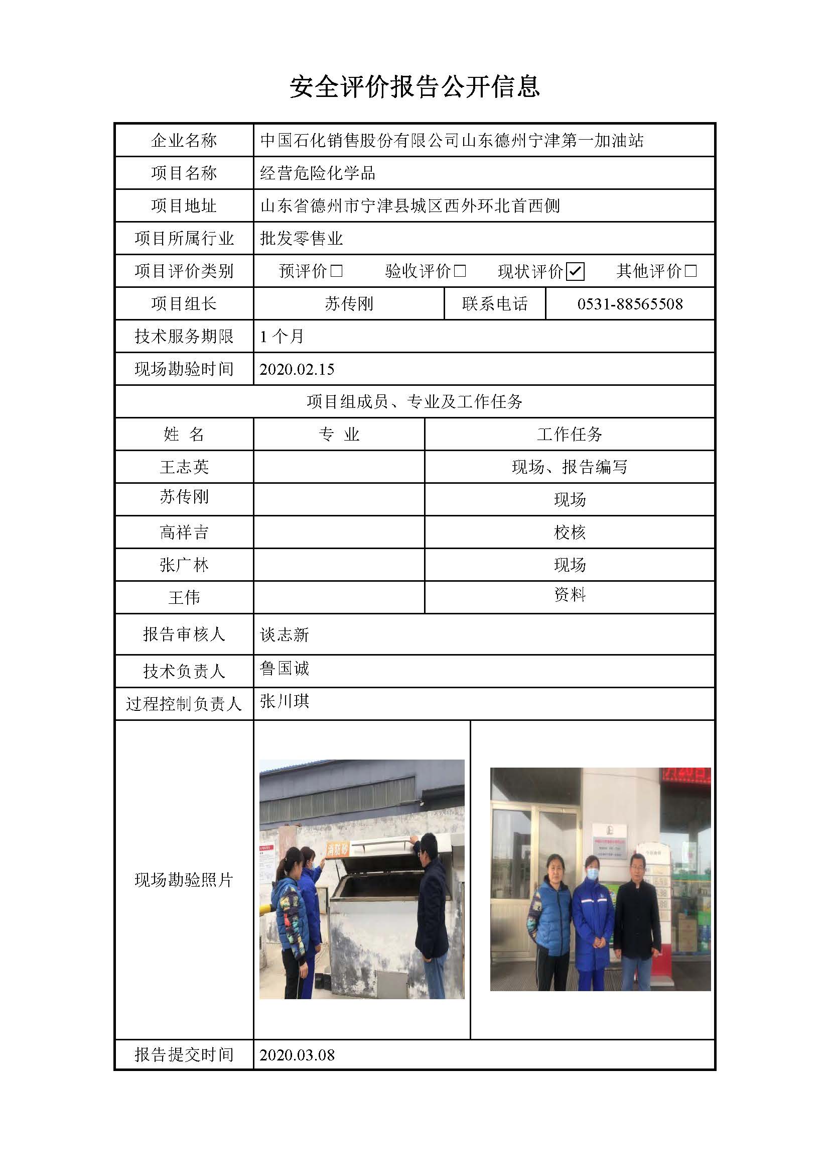 中国石化销售股份有限公司山东德州宁津第一加油站安全评价报告信息公开