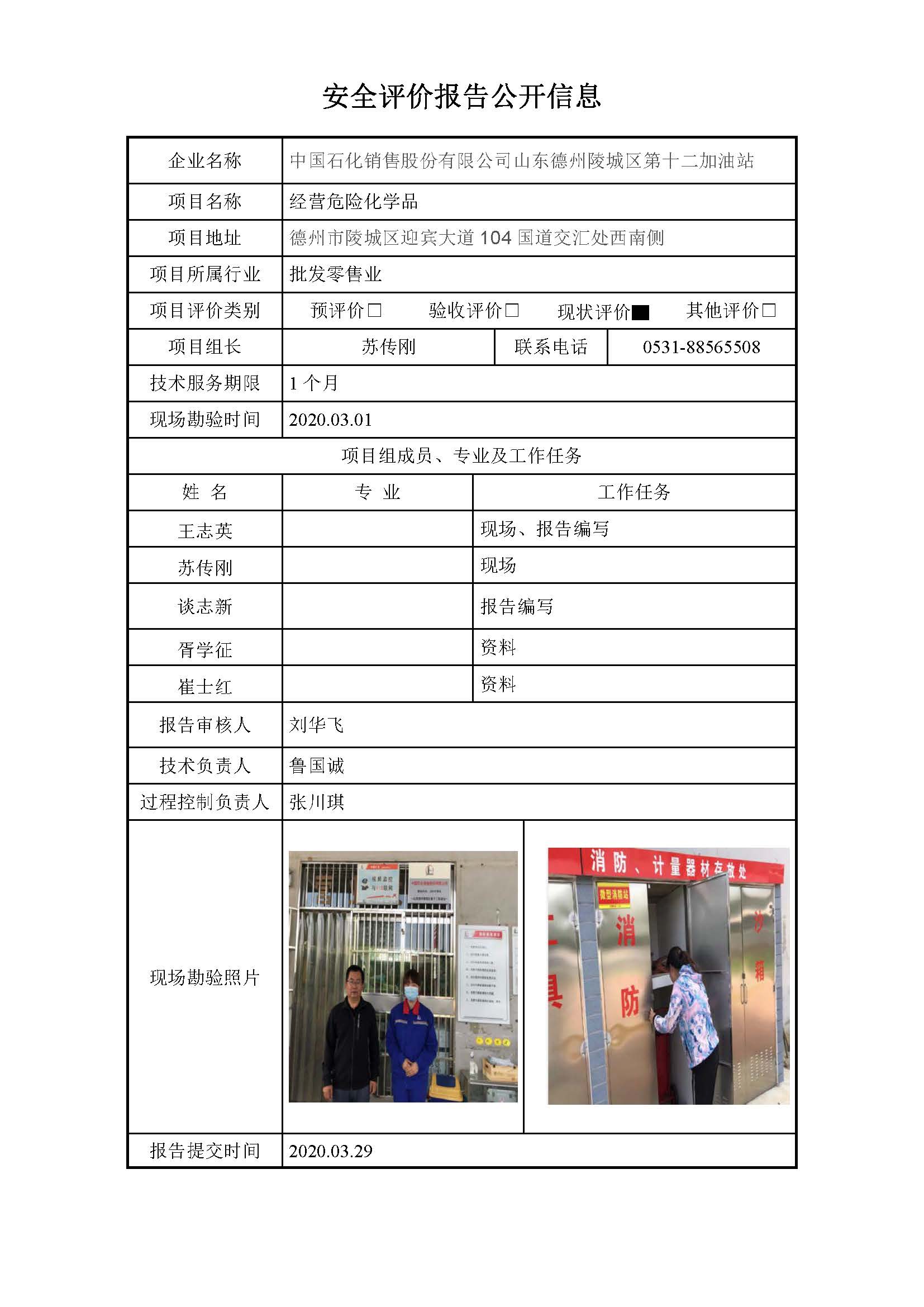 中国石化销售股份有限公司山东德州陵城区第十二加油站安全评价报告信息公开