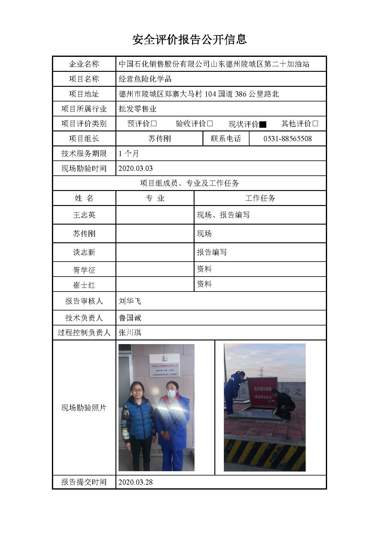 中国石化销售股份有限公司山东德州陵城区第二十加油站安全评价报告信息公开