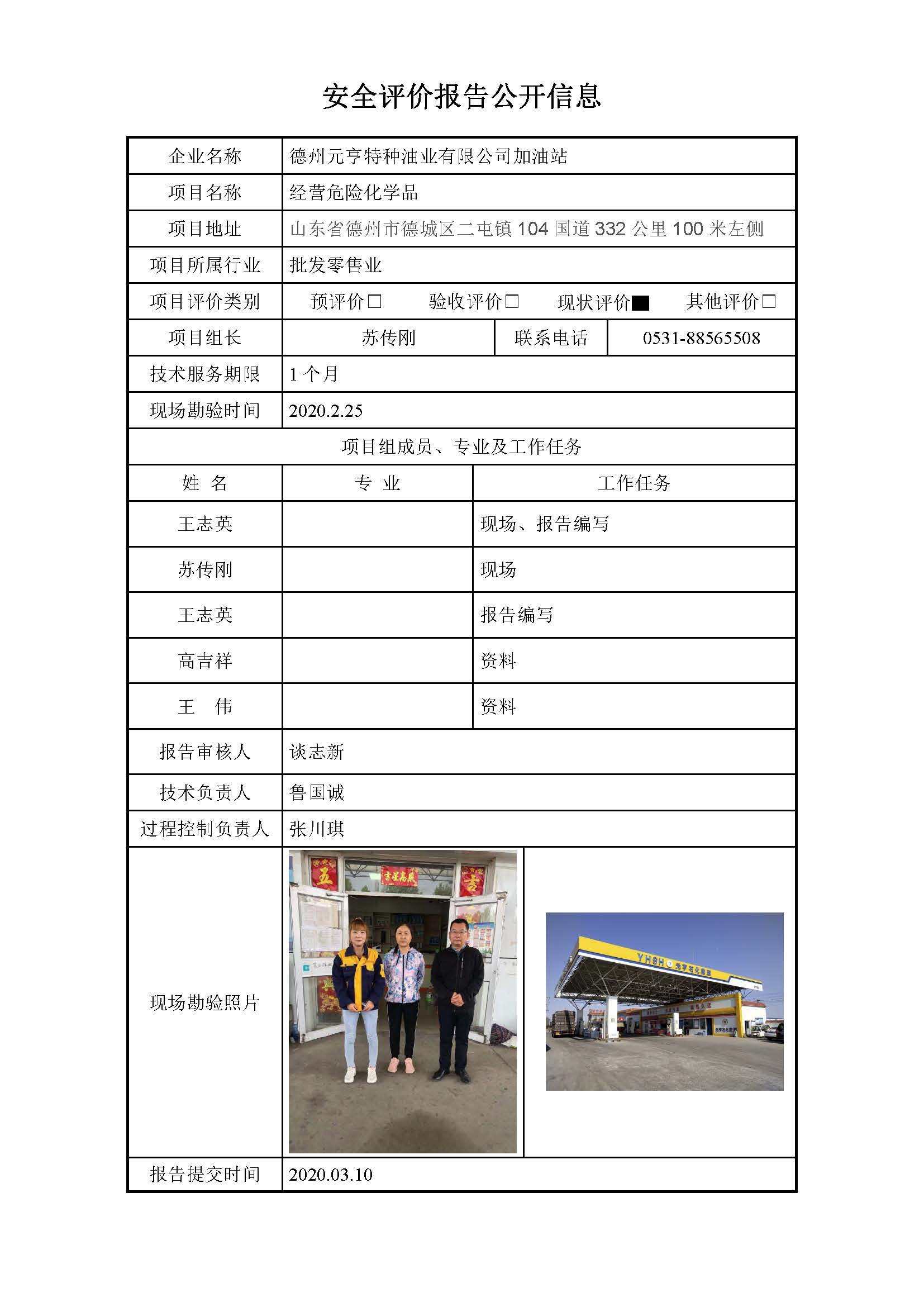 德州元亨特种油业有限公司加油站安全评价报告信息公开