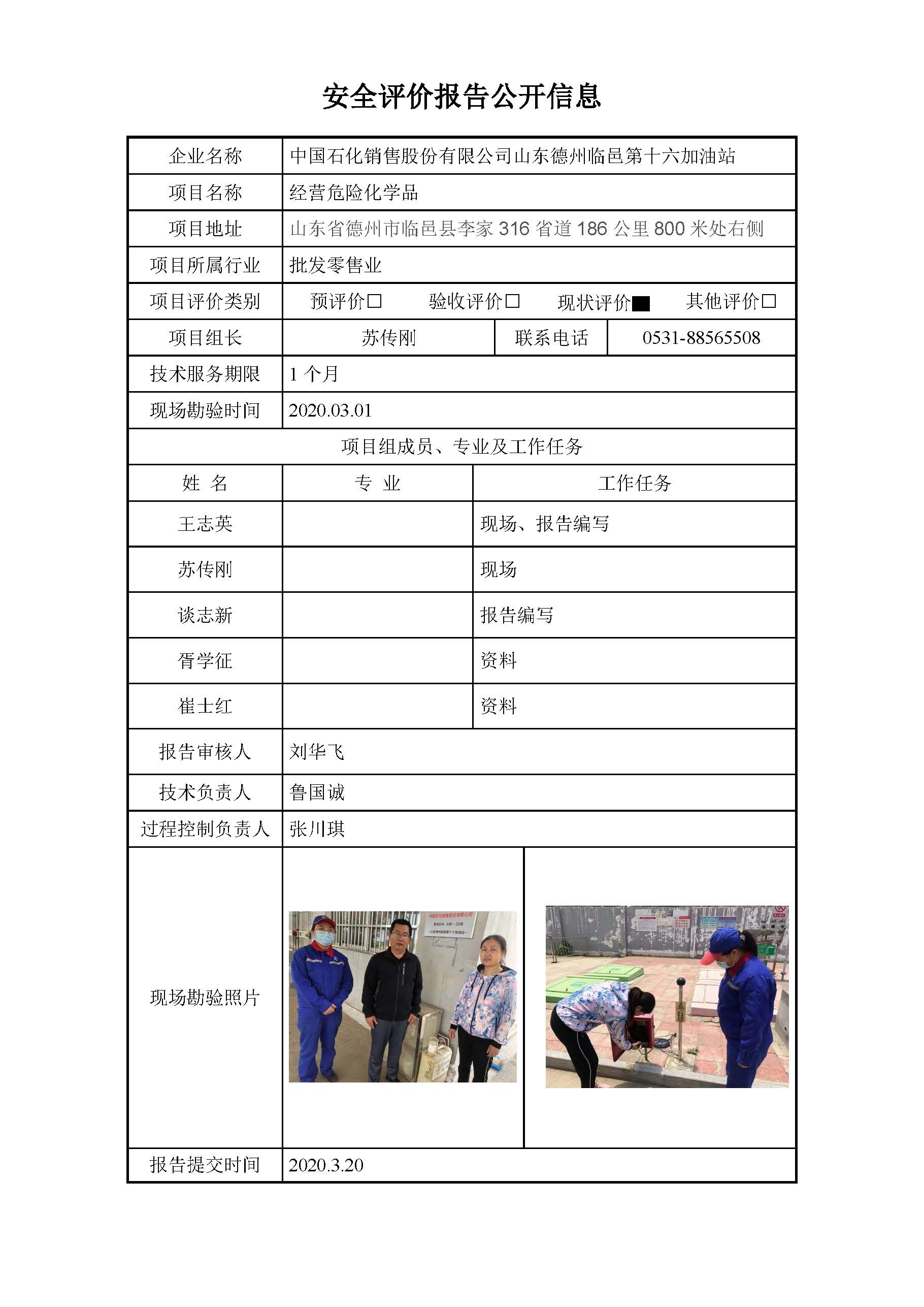 中国石化销售股份有限公司山东德州临邑第十六加油站安全评价报告信息公开