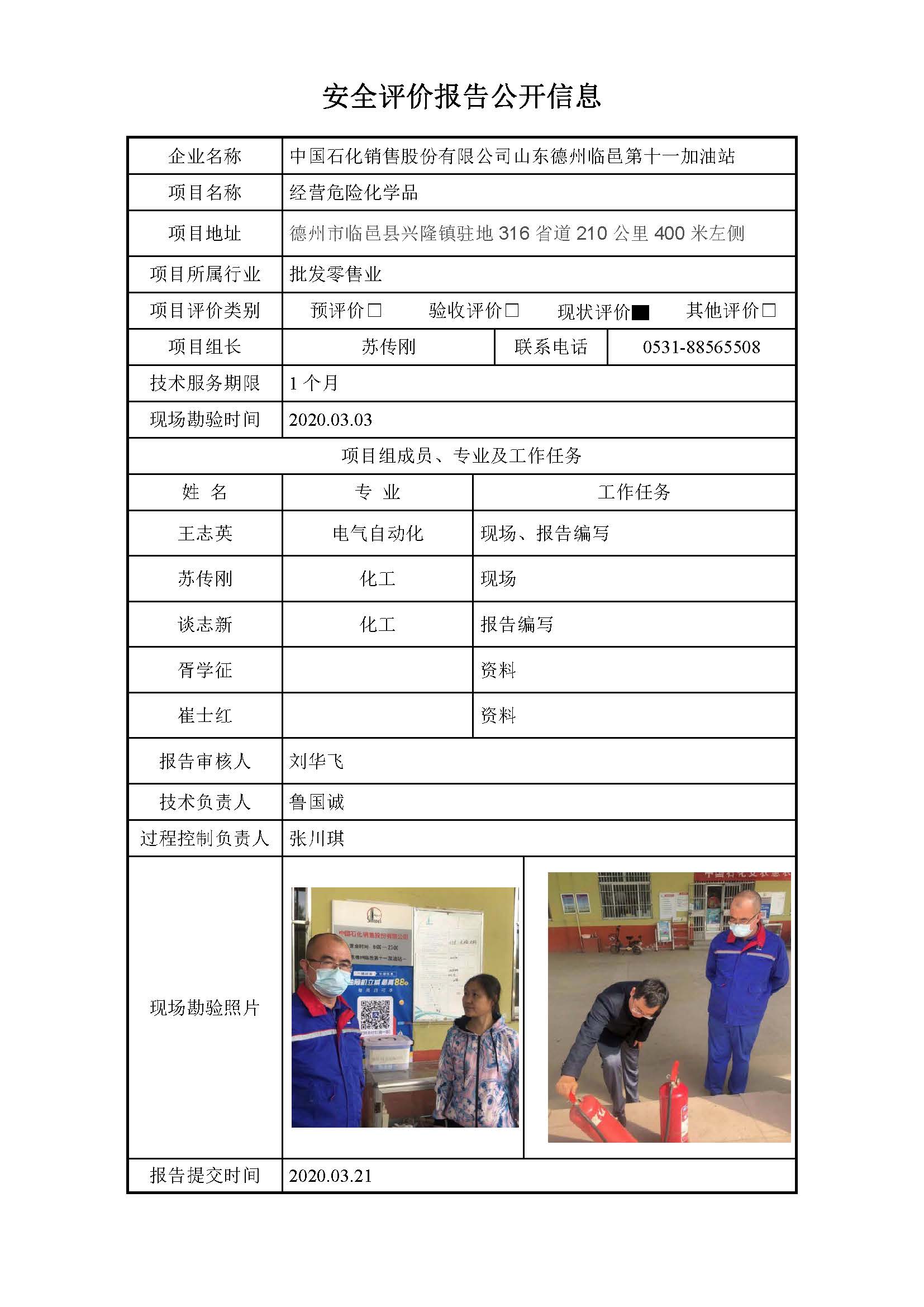 中国石化销售股份有限公司山东德州临邑第十一加油站安全评价报告信息公开