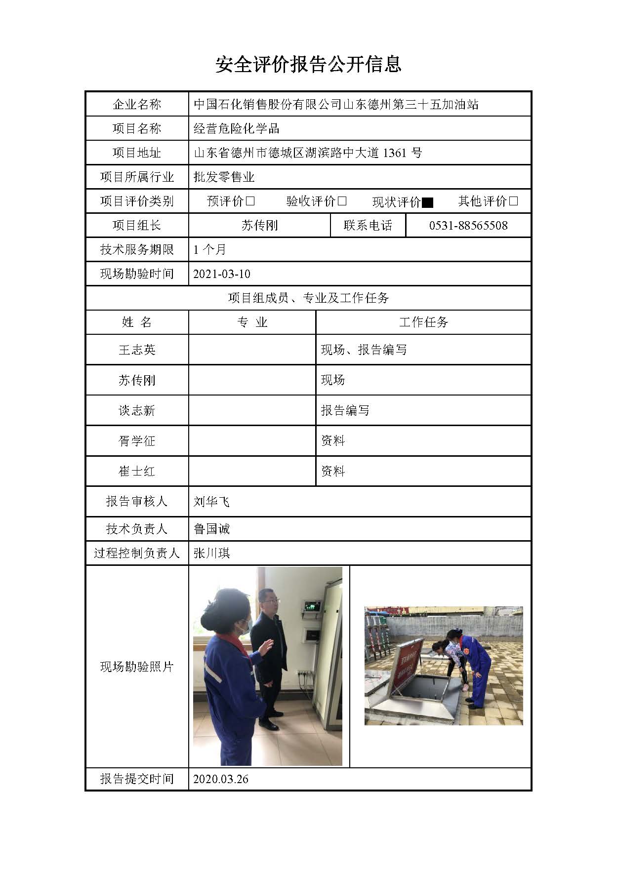 中国石化销售股份有限公司山东德州第三十五加油站安全评价报告信息公开