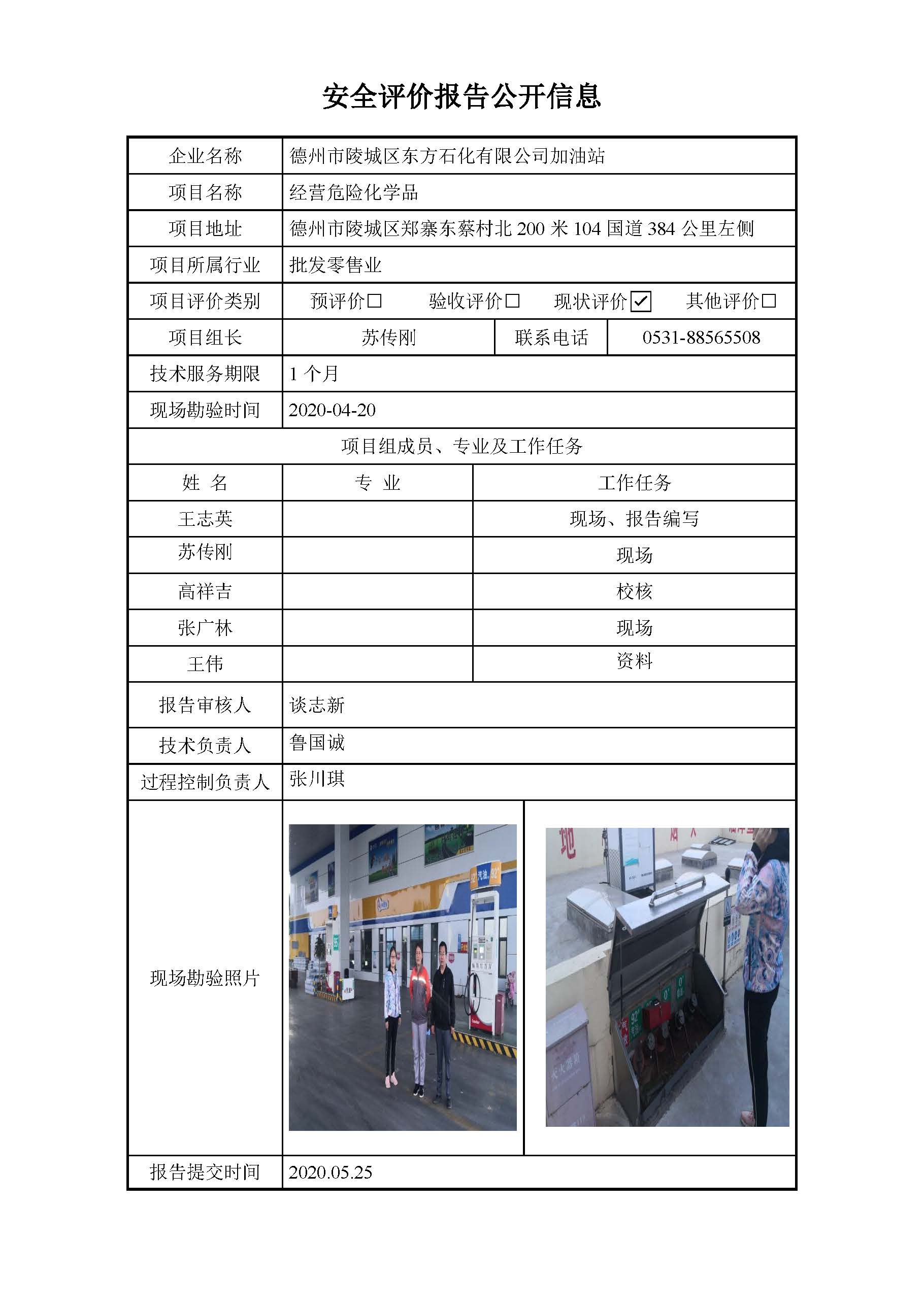 德州市陵城区东方石化有限公司加油站安全评价报告信息公开