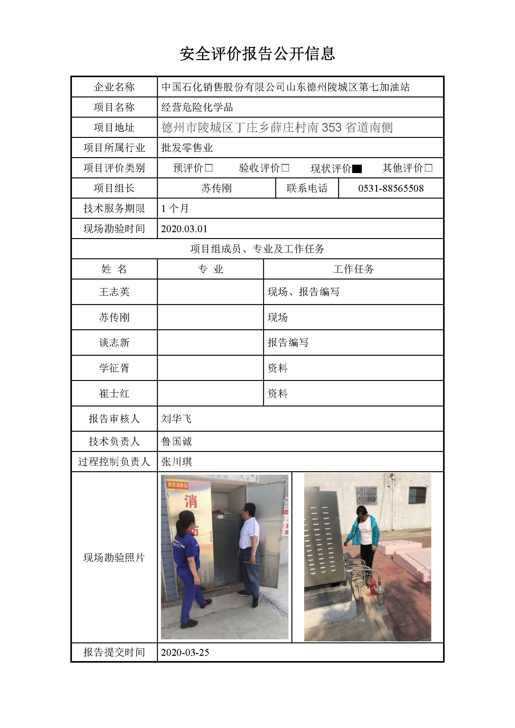 中国石化销售股份有限公司山东德州陵城区第七加油站安全评价报告信息公开