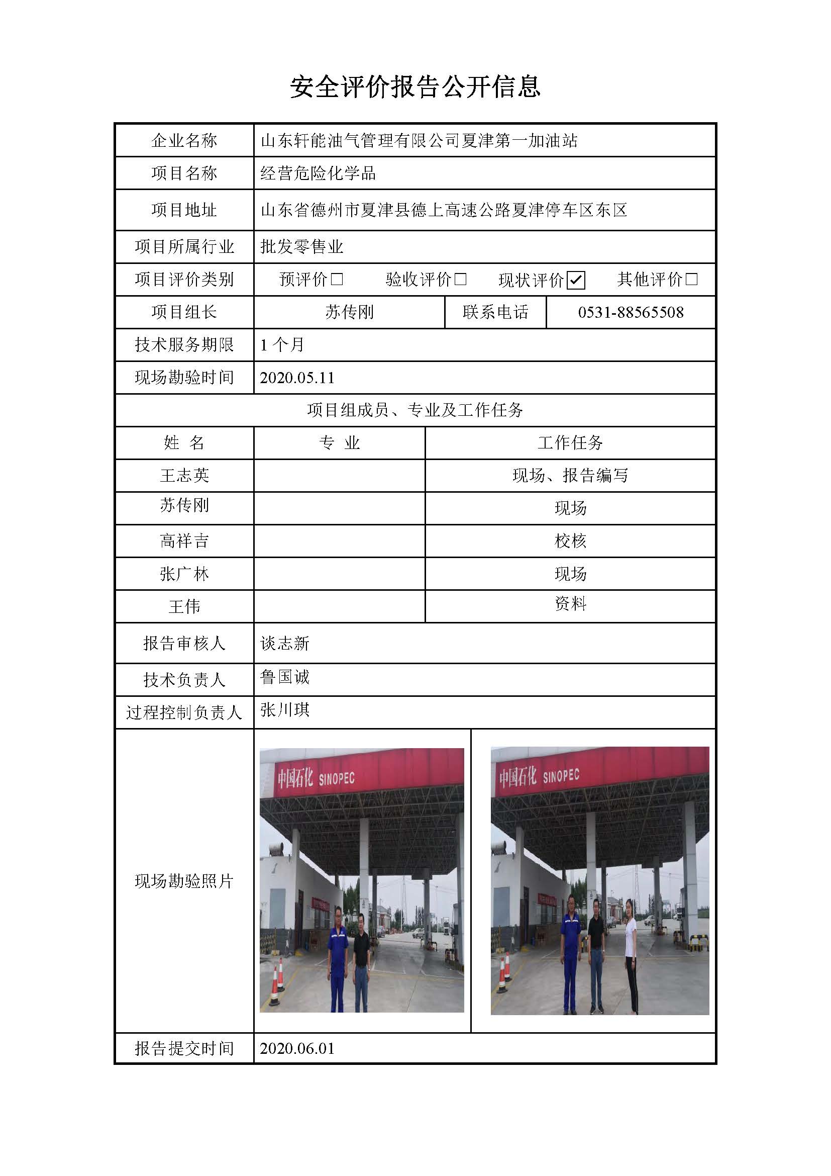 山东轩能油气管理有限公司夏津第一加油站安全评价报告信息公开