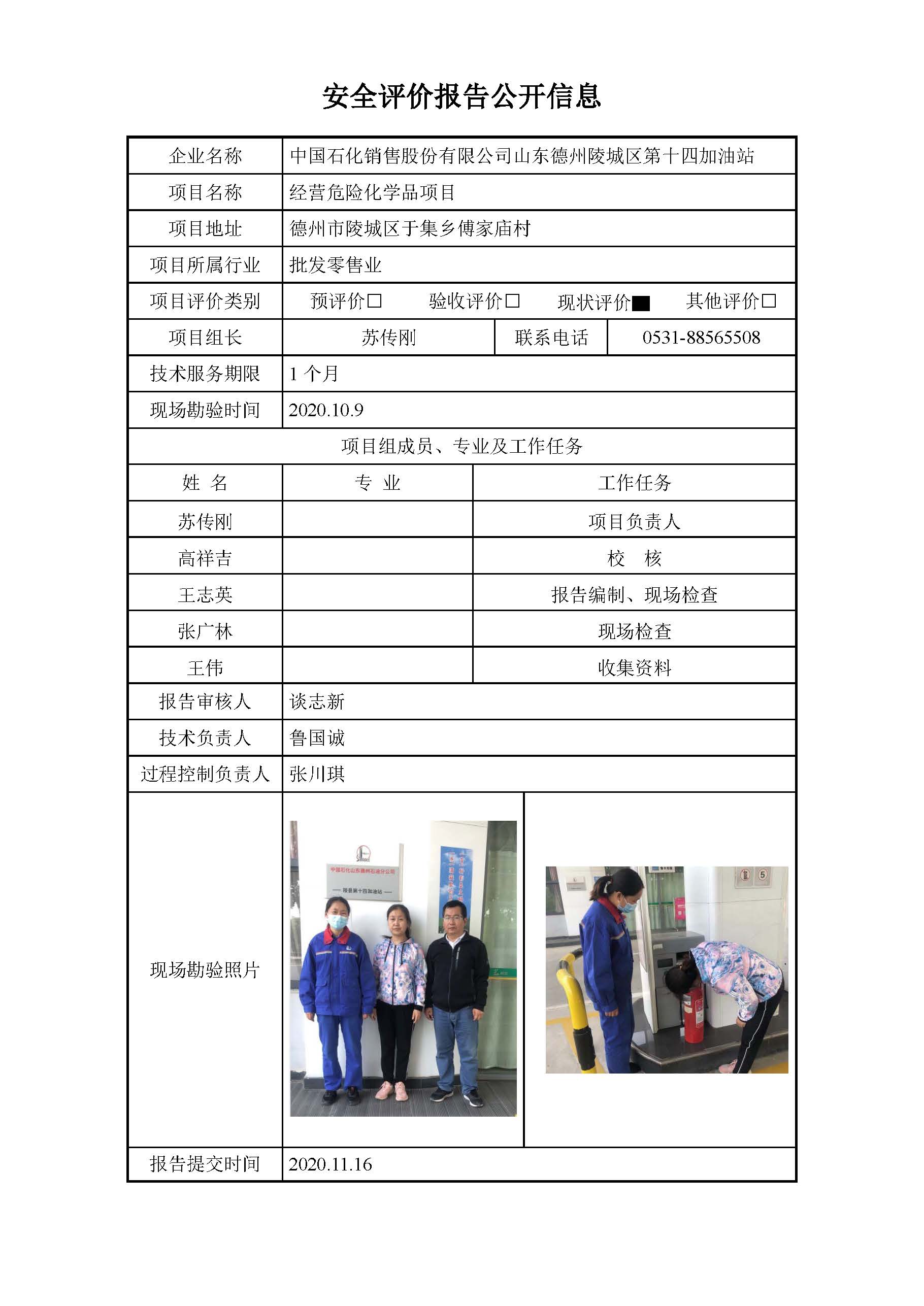 中国石化销售股份有限公司山东德州陵城第十四加油站安全评价报告信息公开