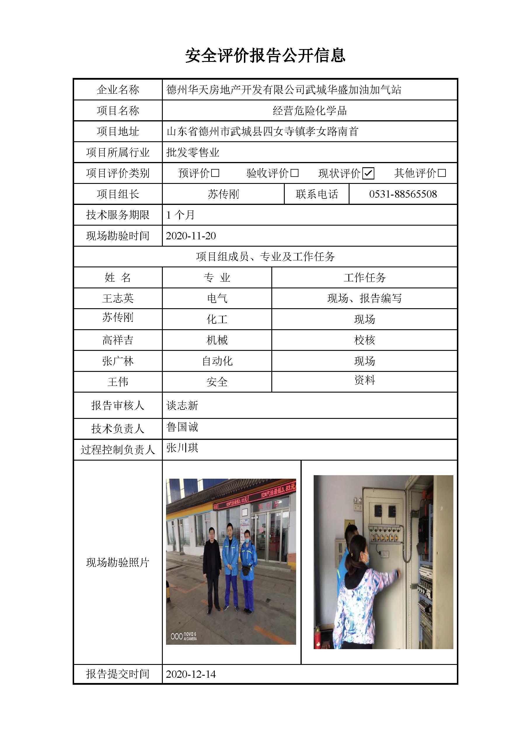 德州华天房地产开发有限公司武城华盛加油加气站安全评价报告信息公开