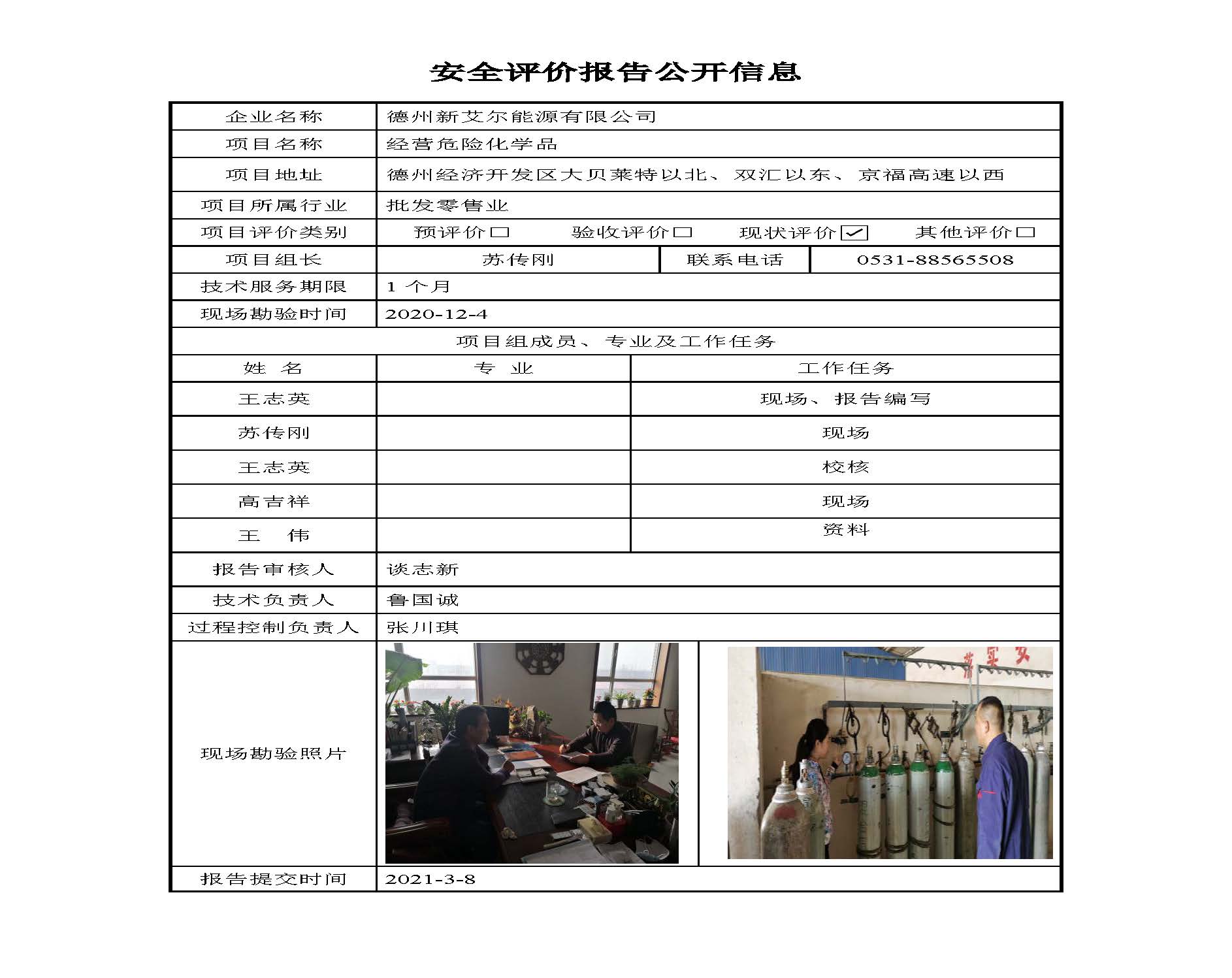 德州新艾尔能源有限公司安全评价报告信息公开