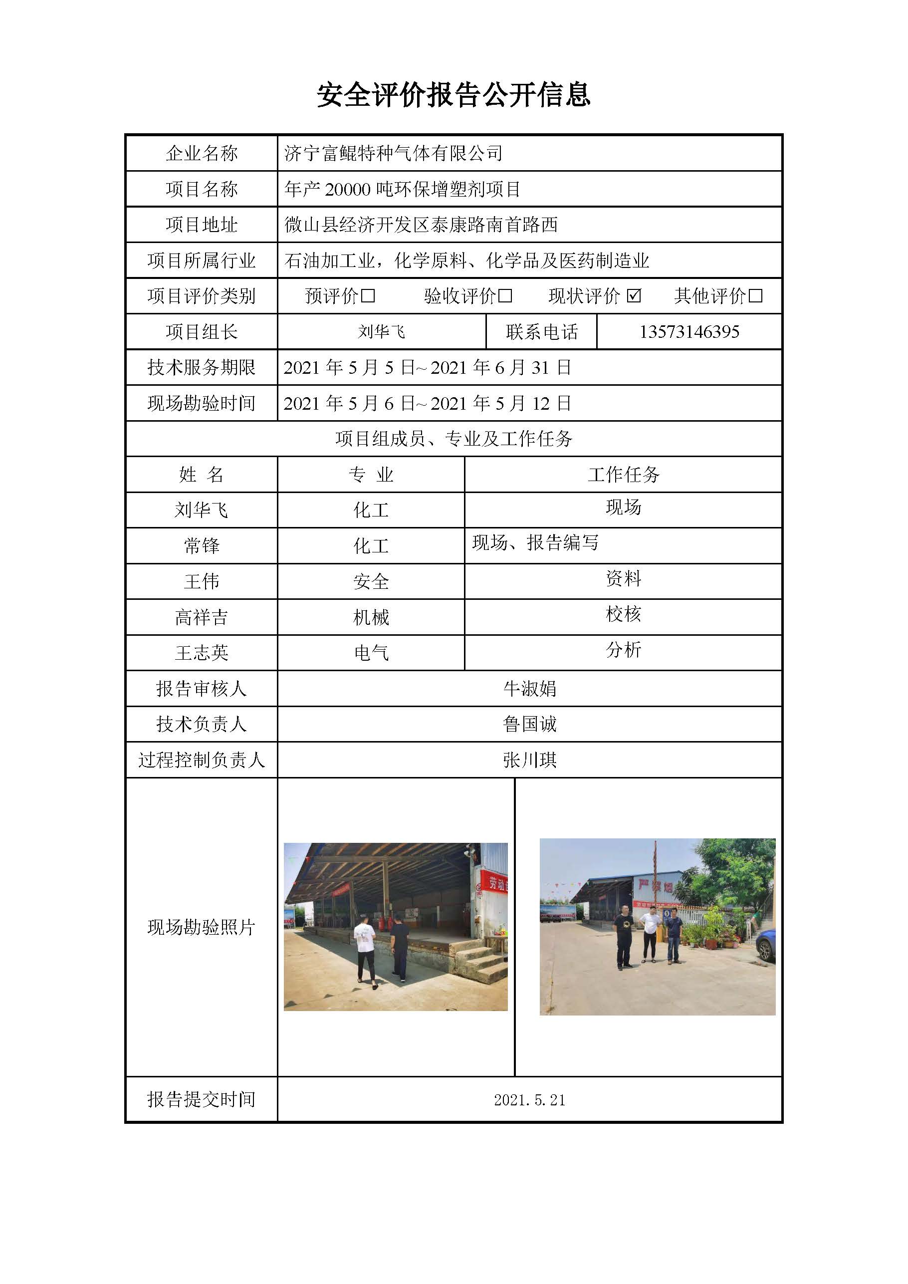 济宁富鲲特种气体有限公司安全评价报告信息公开