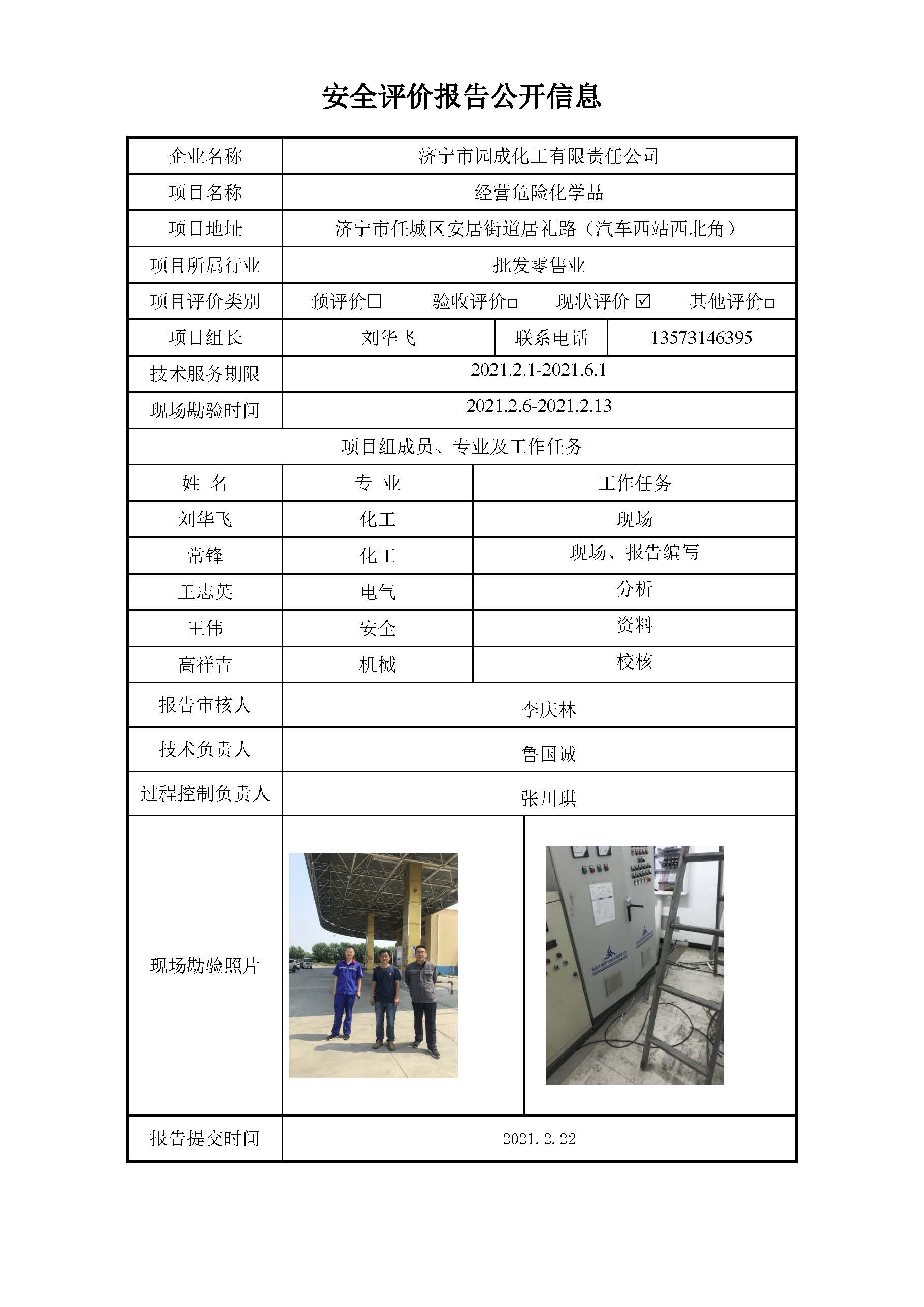 济宁市园成化工有限责任公司现状评价安全评价报告信息公开