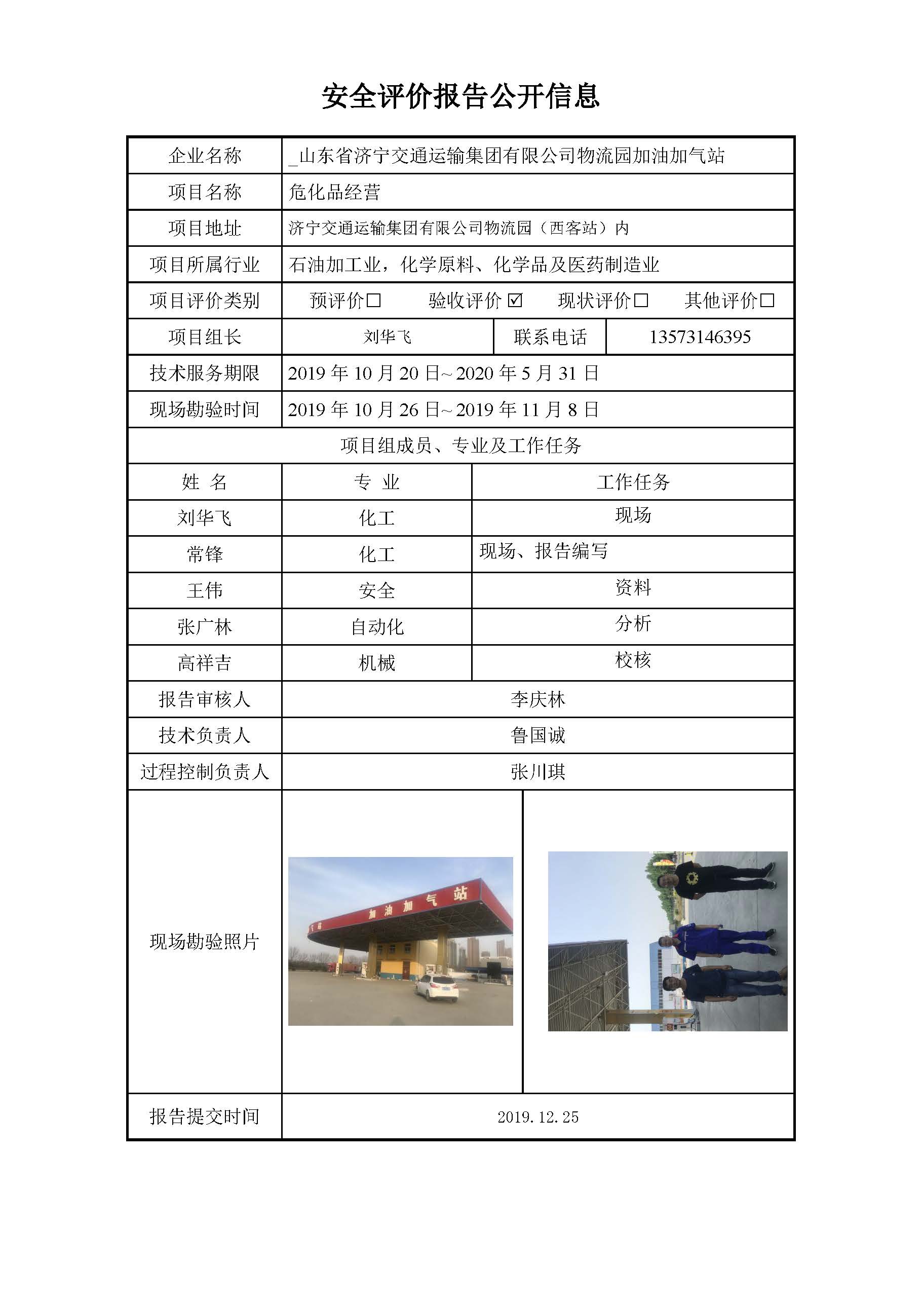 山东省济宁交通运输集团有限公司物流园加油加气站安全评价报告信息公开