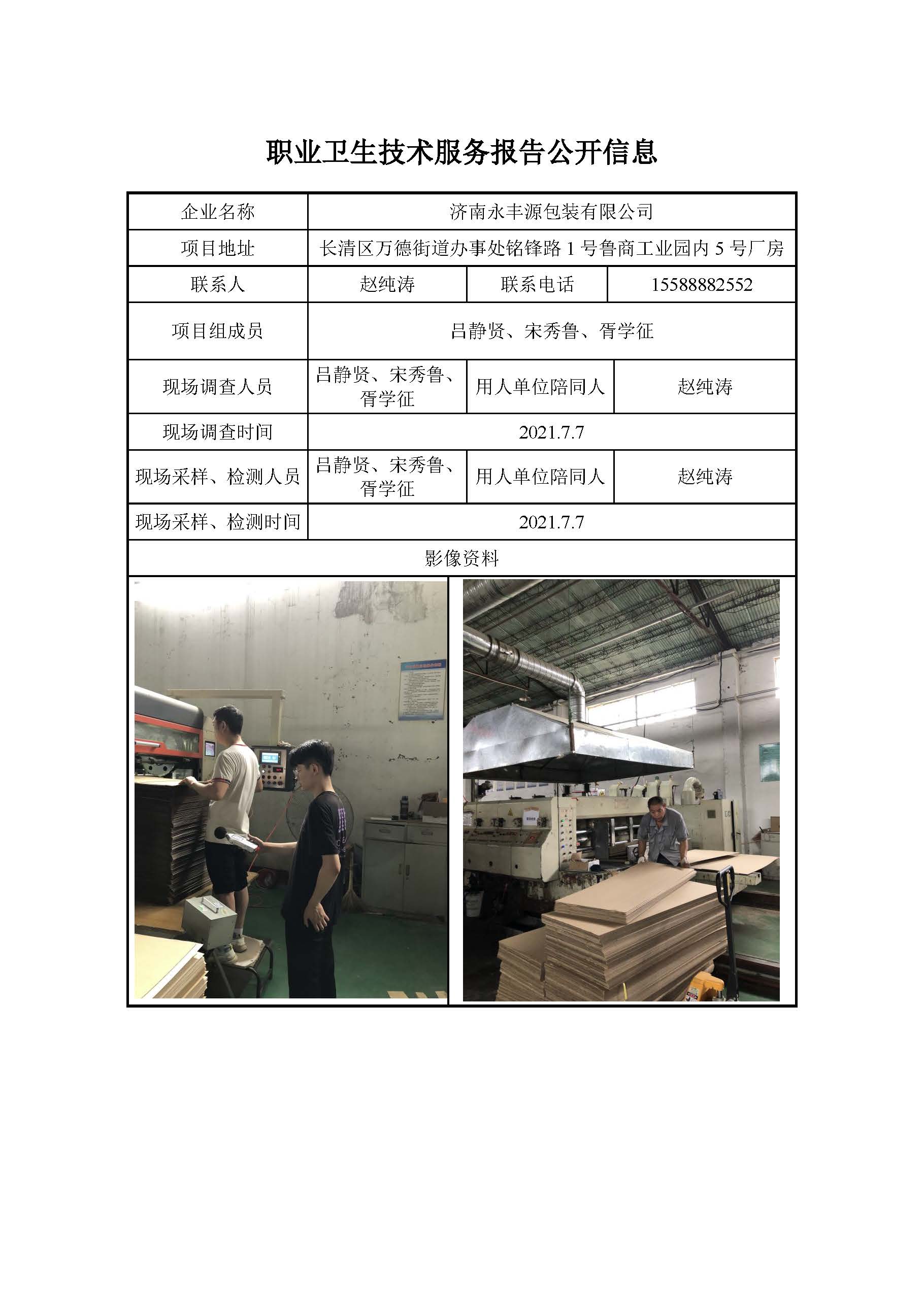 ZBZY21-DQ-068济南永丰源包装有限公司 日常检测信息公开