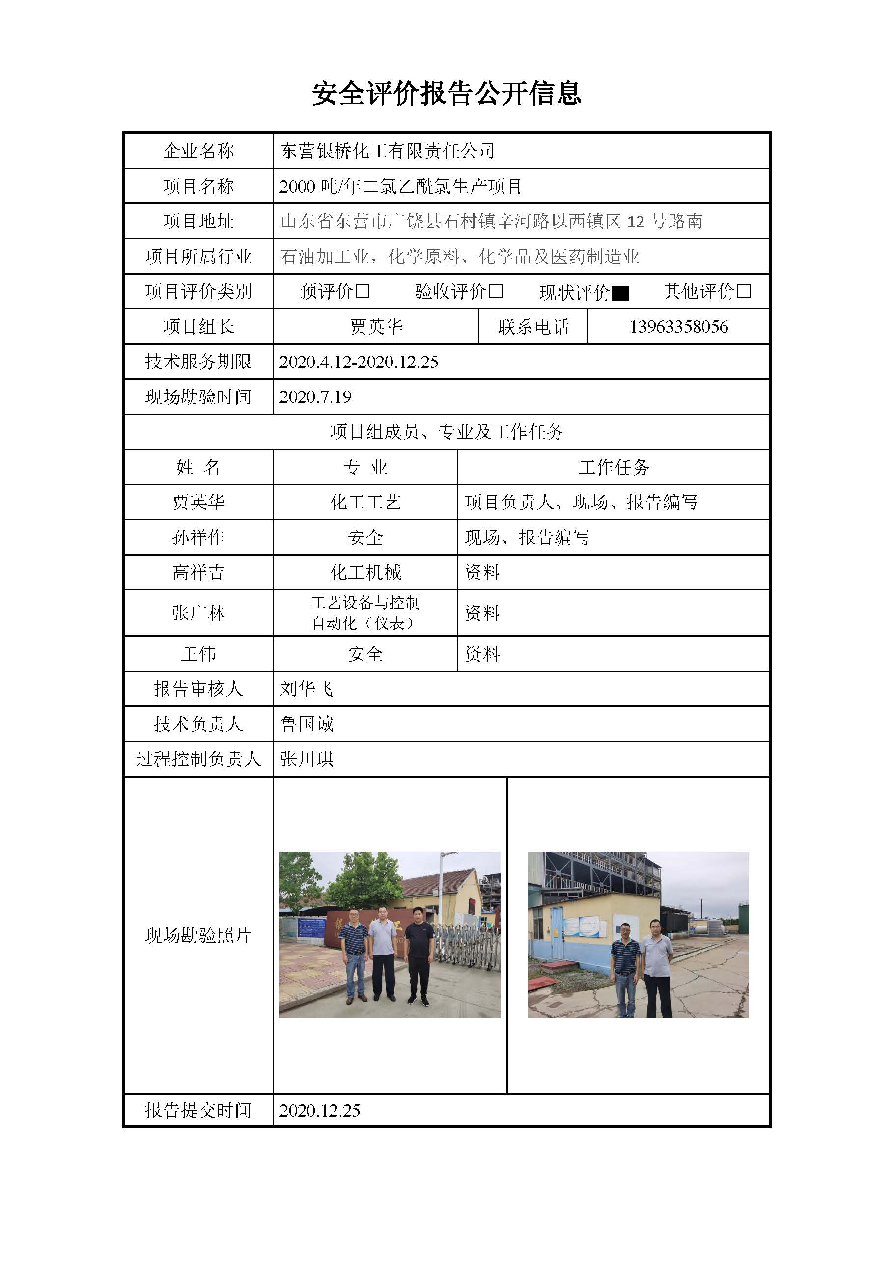 东营银桥化工有限责任公司2000吨年二氯乙酰氯生产项目安全现状评价安全评价信息公开