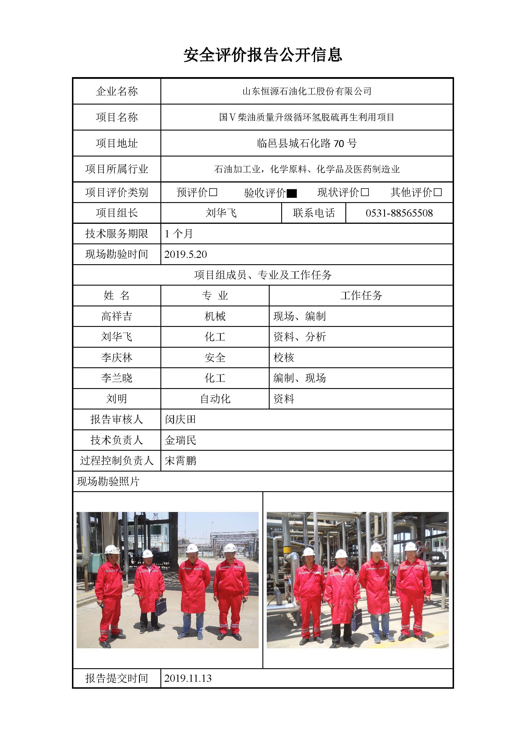 山东恒源石油化工股份有限公司安全评价报告信息公开