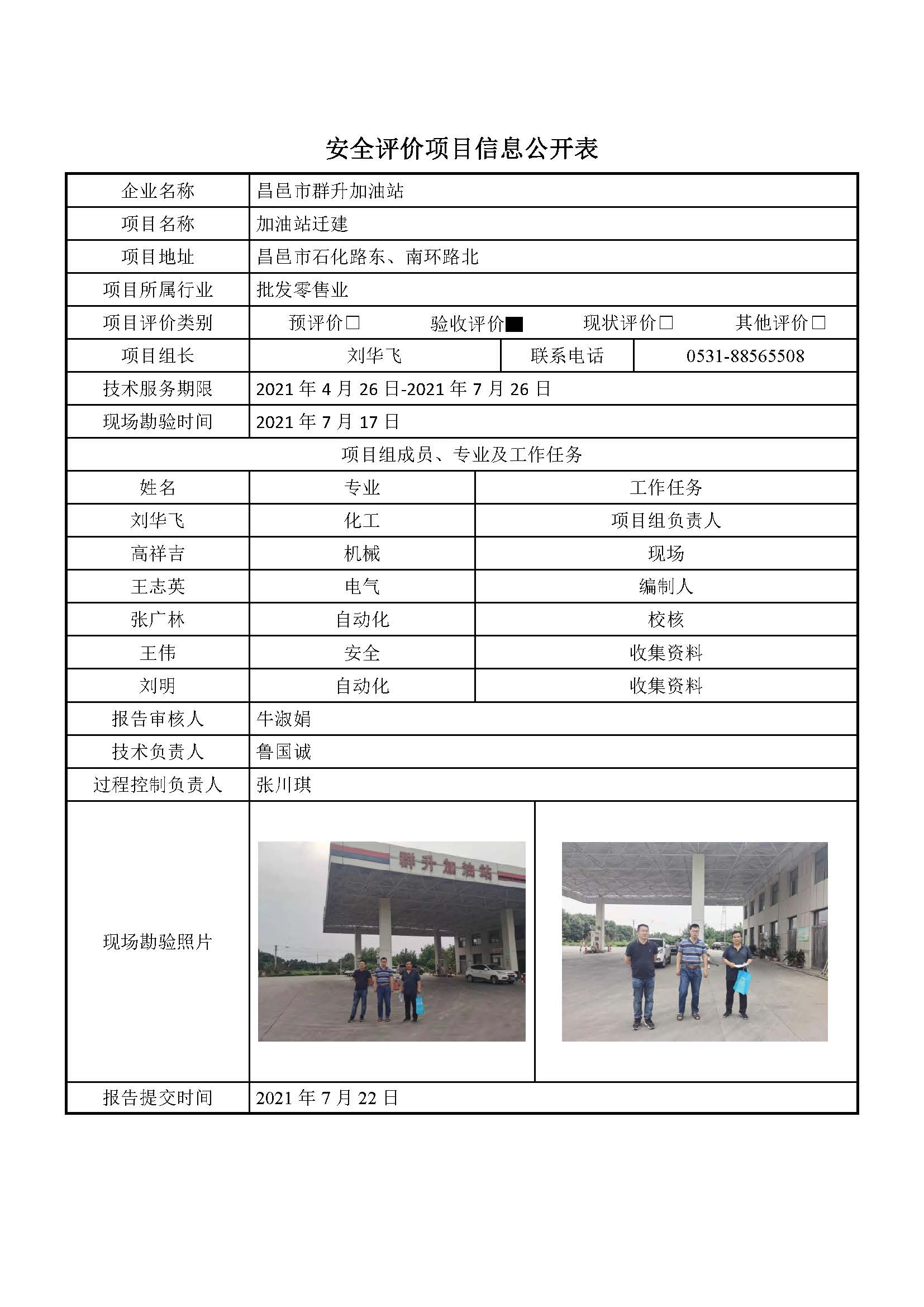 昌邑市群升加油站安全评价项目信息公开