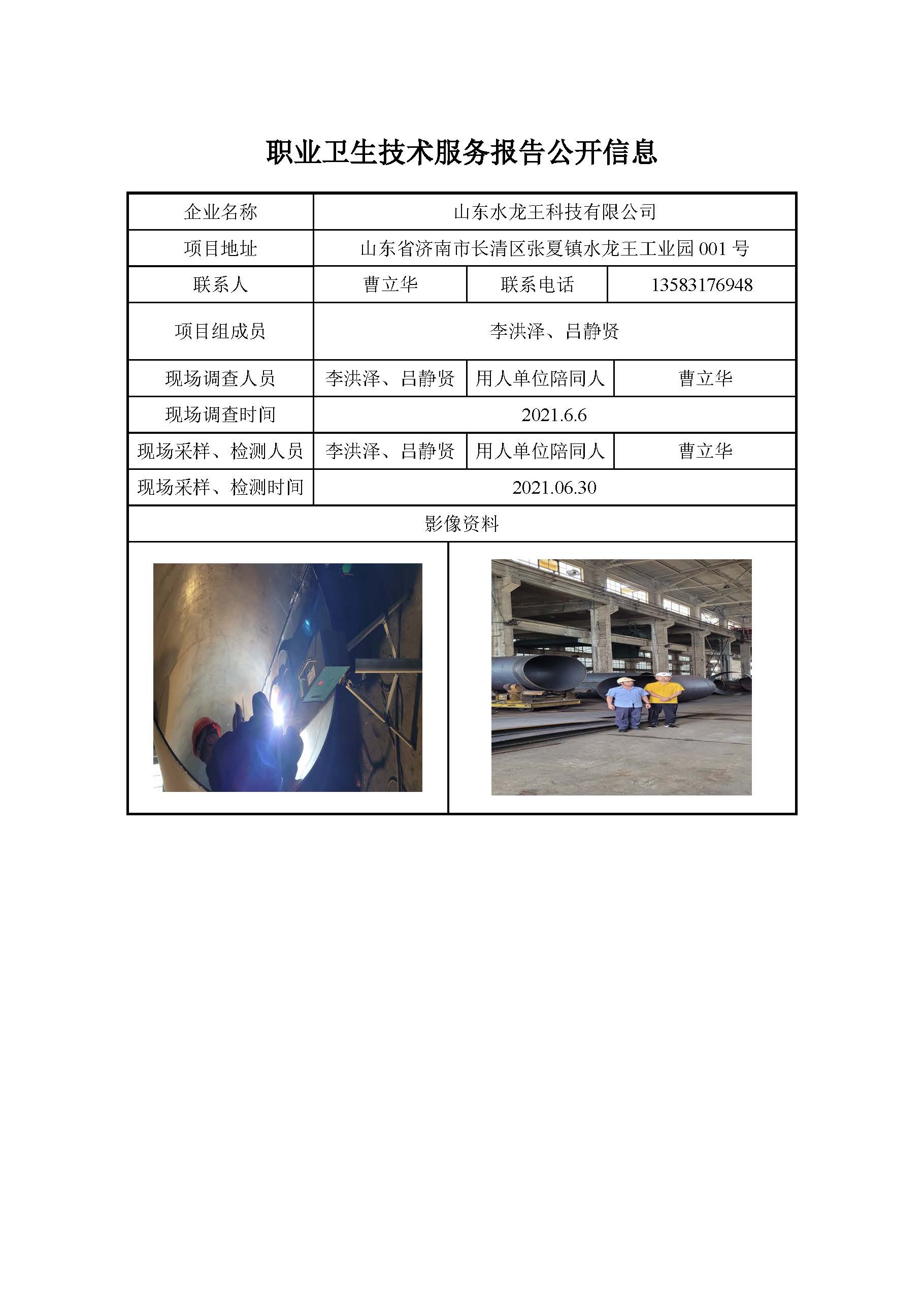 ZBZY21-DQ-069 山东水龙王科技有限公司职业病危害因素定期检测