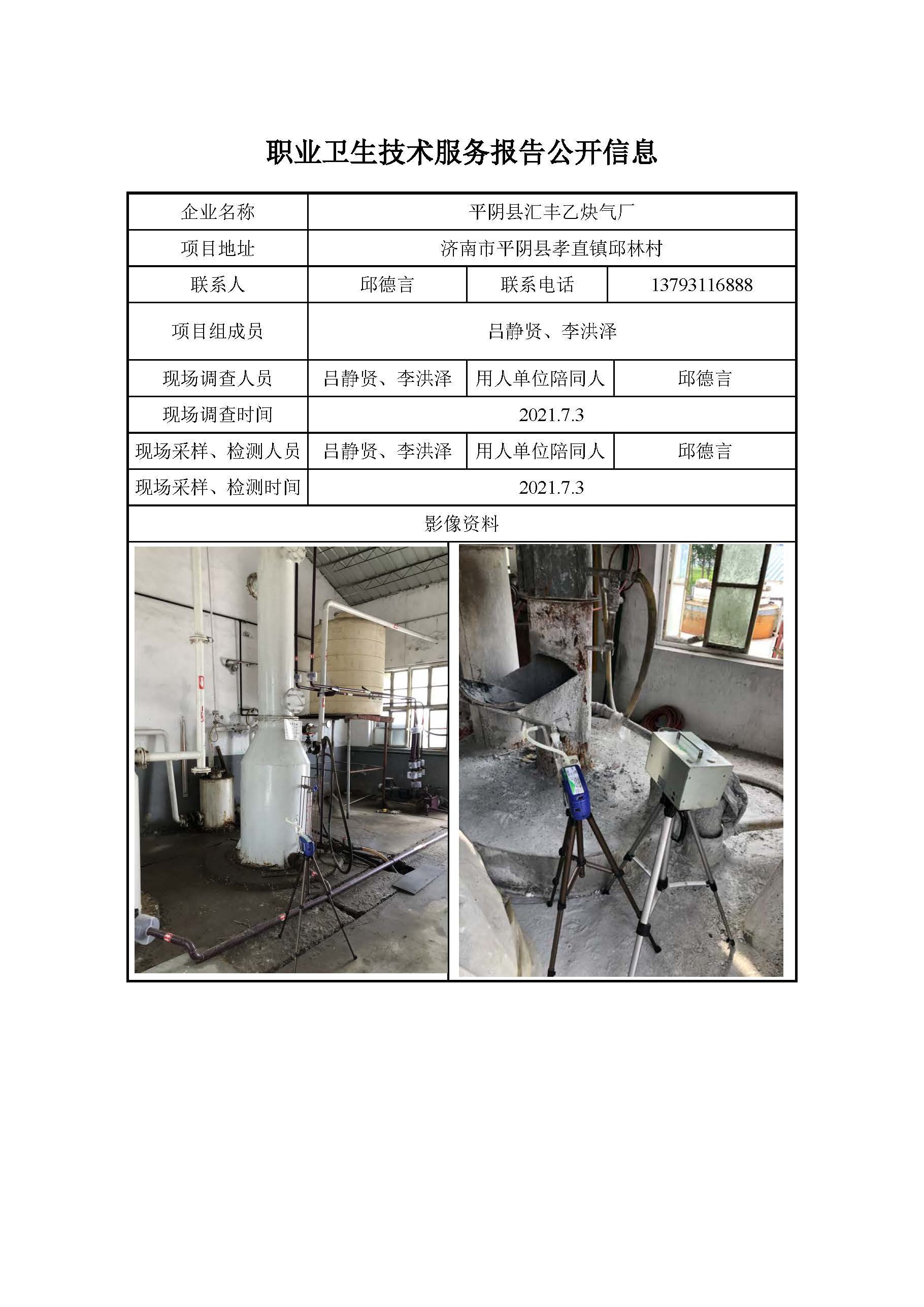 ZBZY21-DQ-072平阴县汇丰乙炔气厂 日常检测信息公开