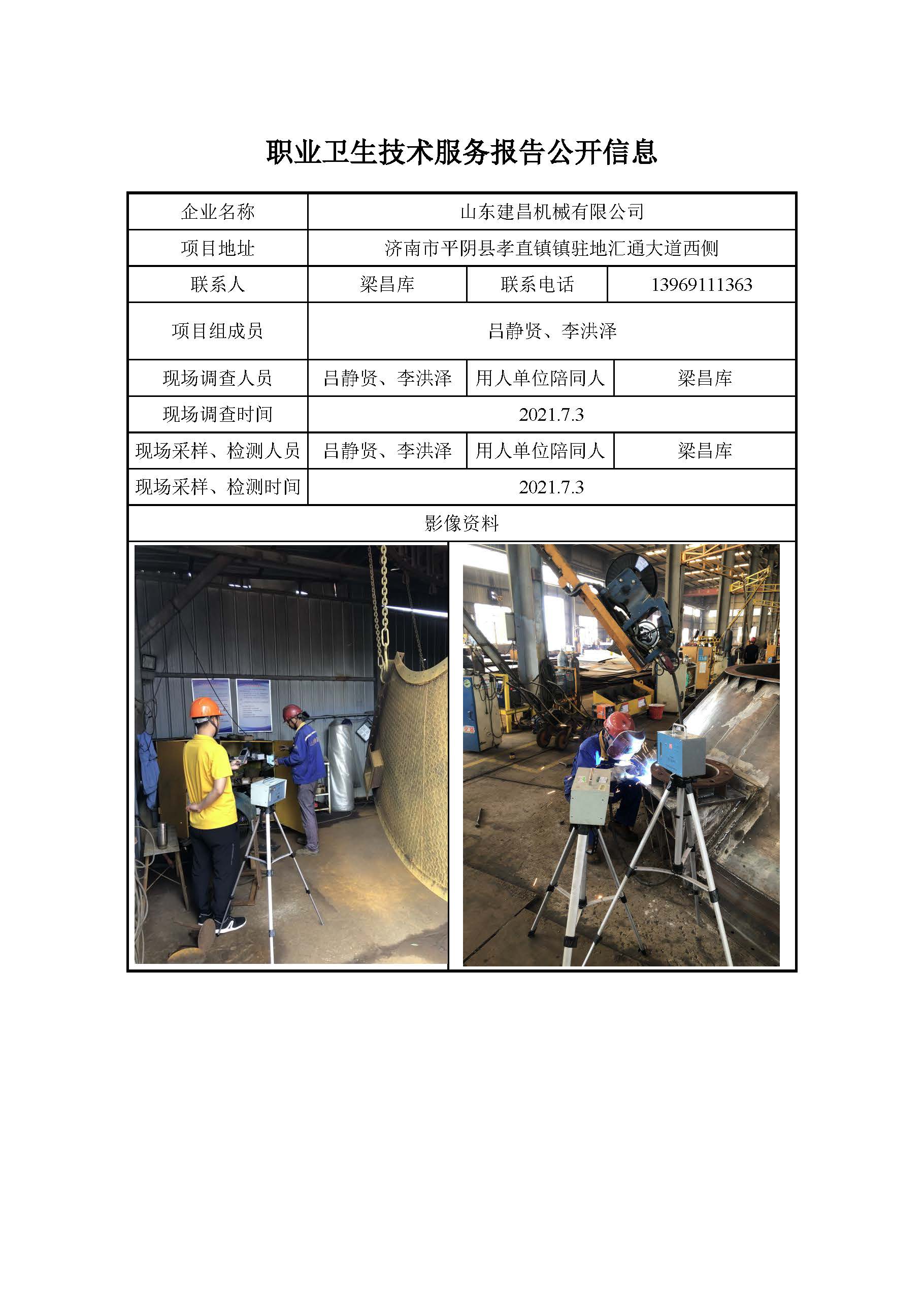ZBZY21-DQ-074山东建昌机械有限公司 日常检测信息公开