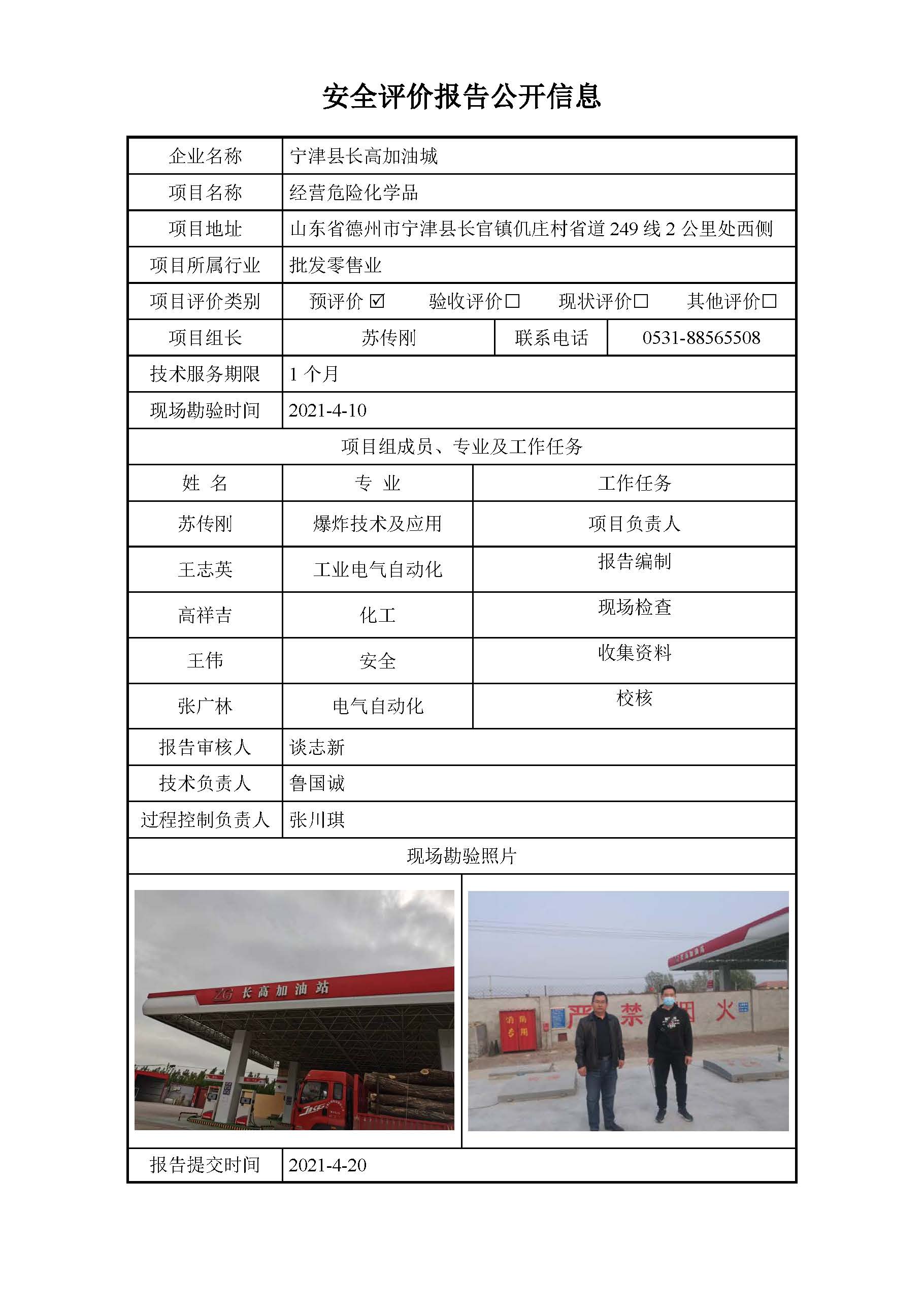 宁津县长高加油站安全评价报告信息公开