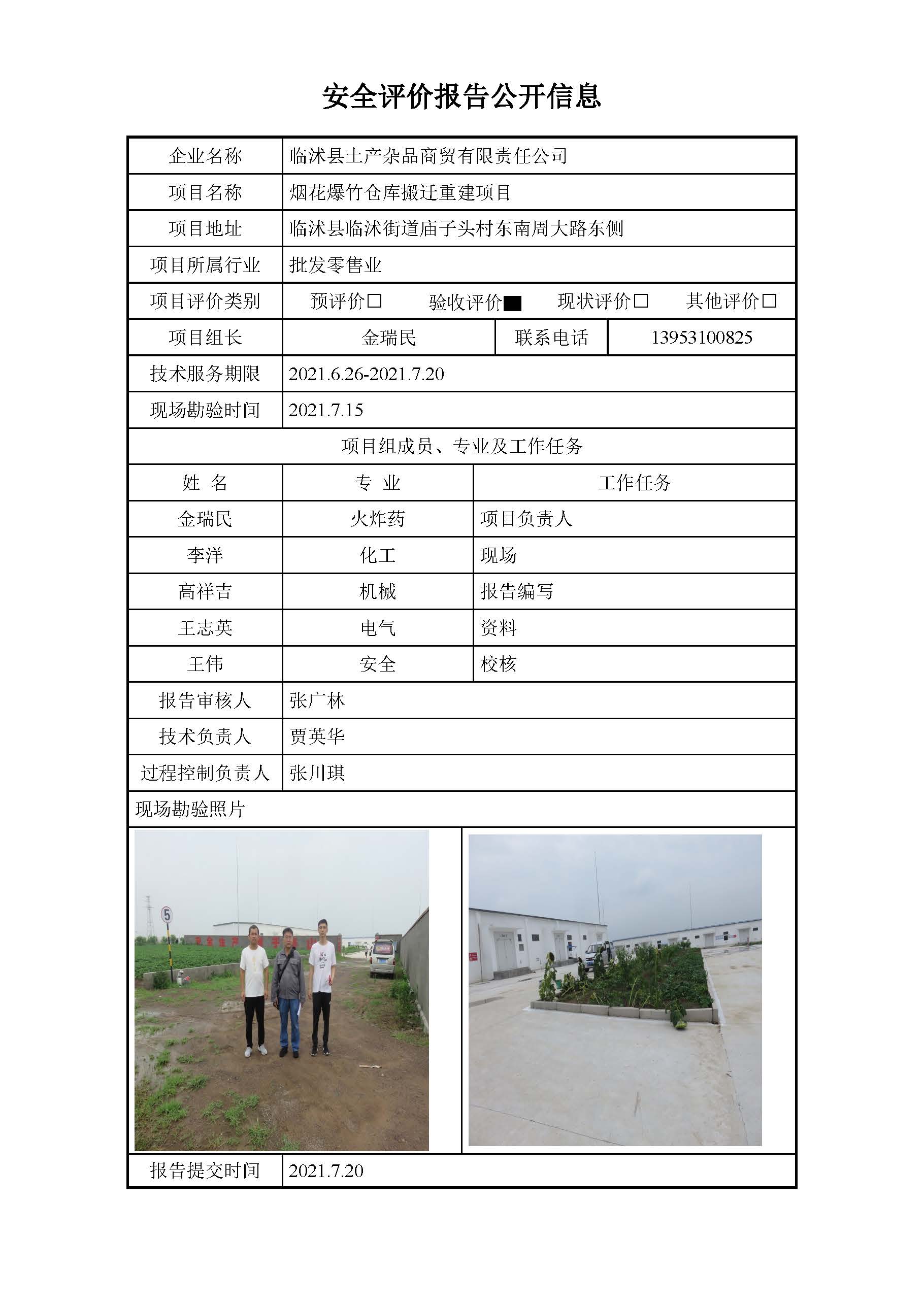 临沭土产烟花爆竹报告安全评价报告信息公开