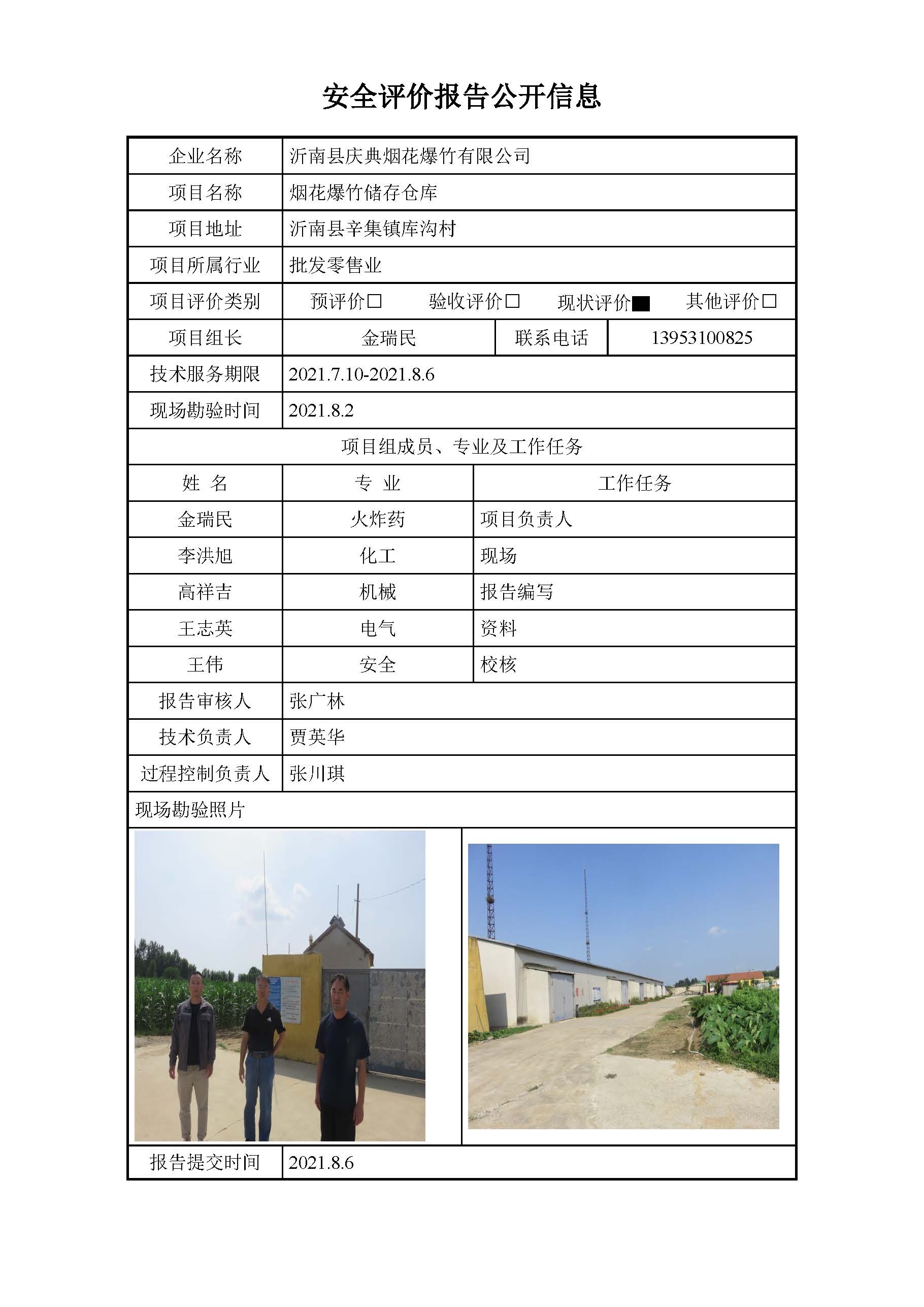 沂南庆典烟花爆竹报告安全评价报告信息公开