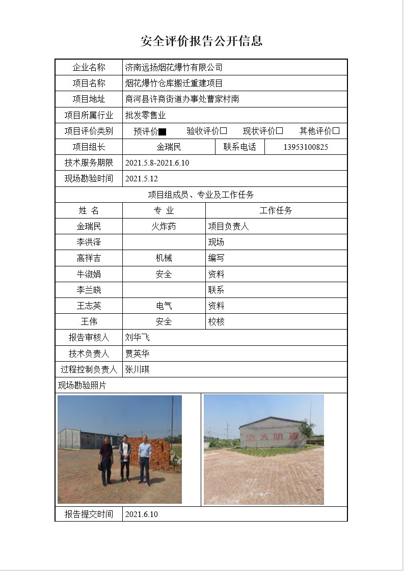 济南远扬烟花爆竹有限公司安全评价报告信息公开