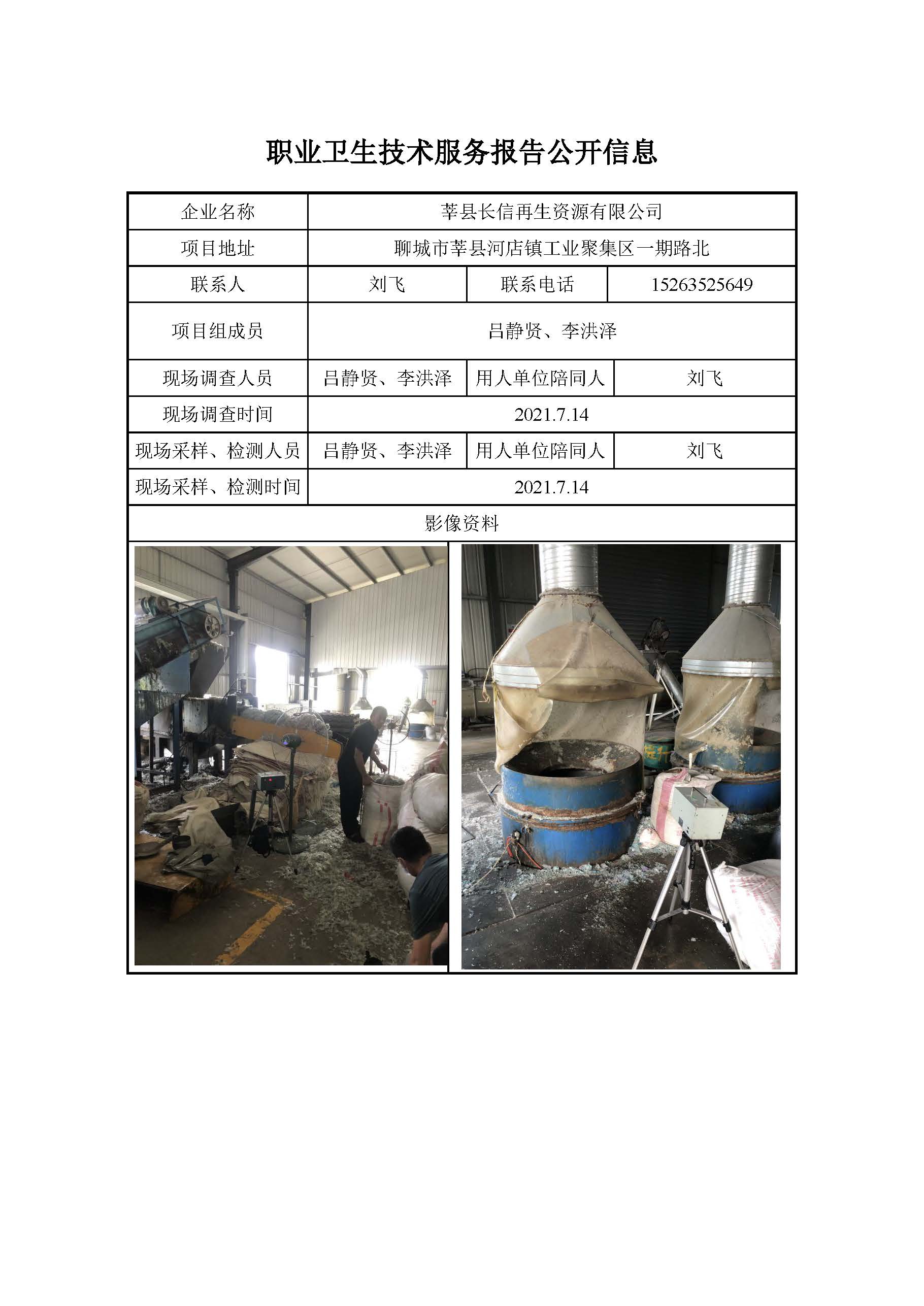 ZBZY21-DQ-082莘县长信再生资源有限公司 日常检测信息公开